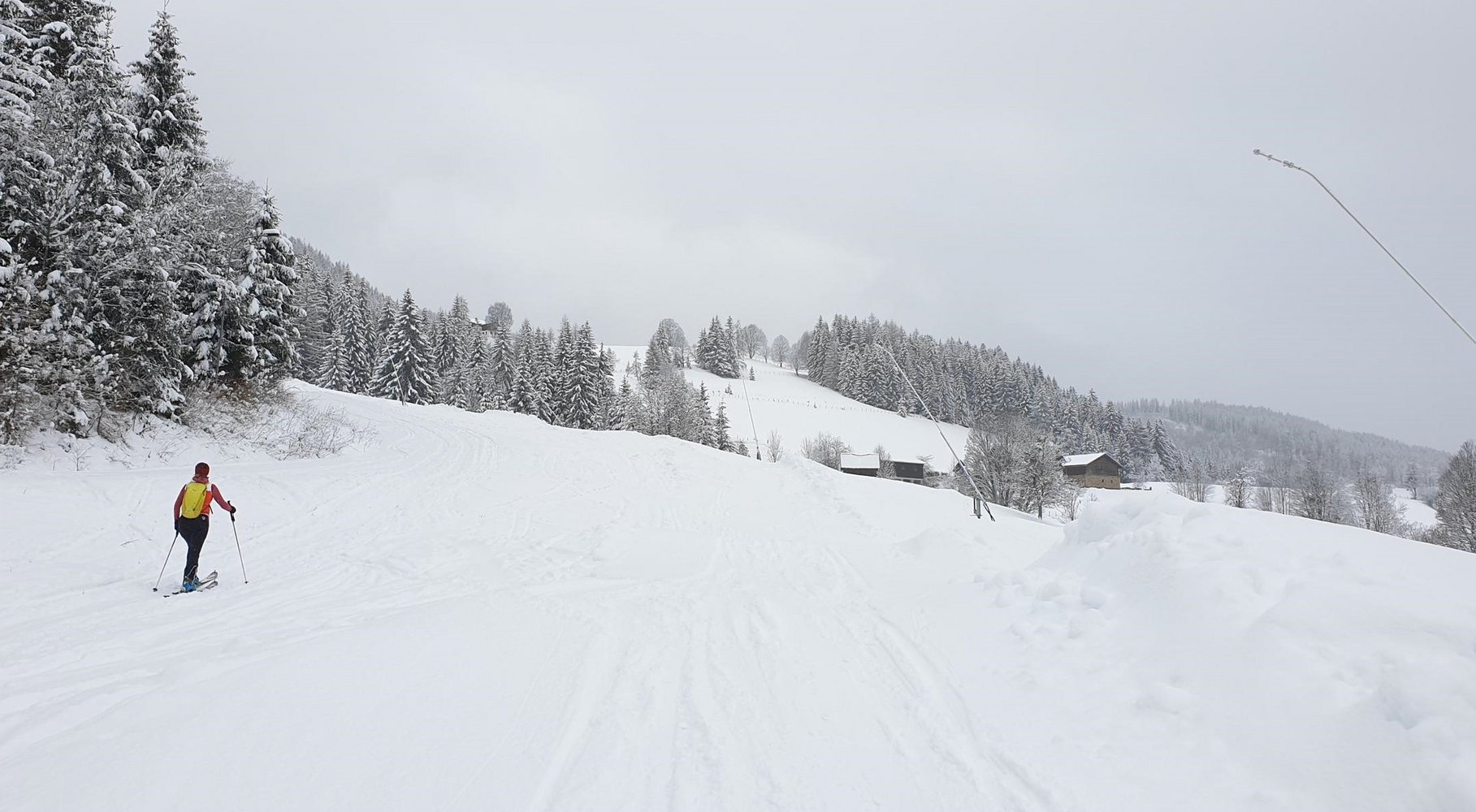Die Skitour Galsterberg startet bei der Talstation GUB Galsterberg direkt beim Startportal und führt nach einem kurzen Stück auf der Piste links in den Wald, wo eine ausgeschilderte Route weiterverläuft. Weiter hinauf Richtung GUB Bergstation, mit teils Pistenabschnitten und Waldpassagen. Ab hier verläuft die Aufstiegspur entlang der Piste, vorbei an der Galsterbergalmhütte bis zur Bergstation Sessellift Vorderkahr auf 1.978 m.