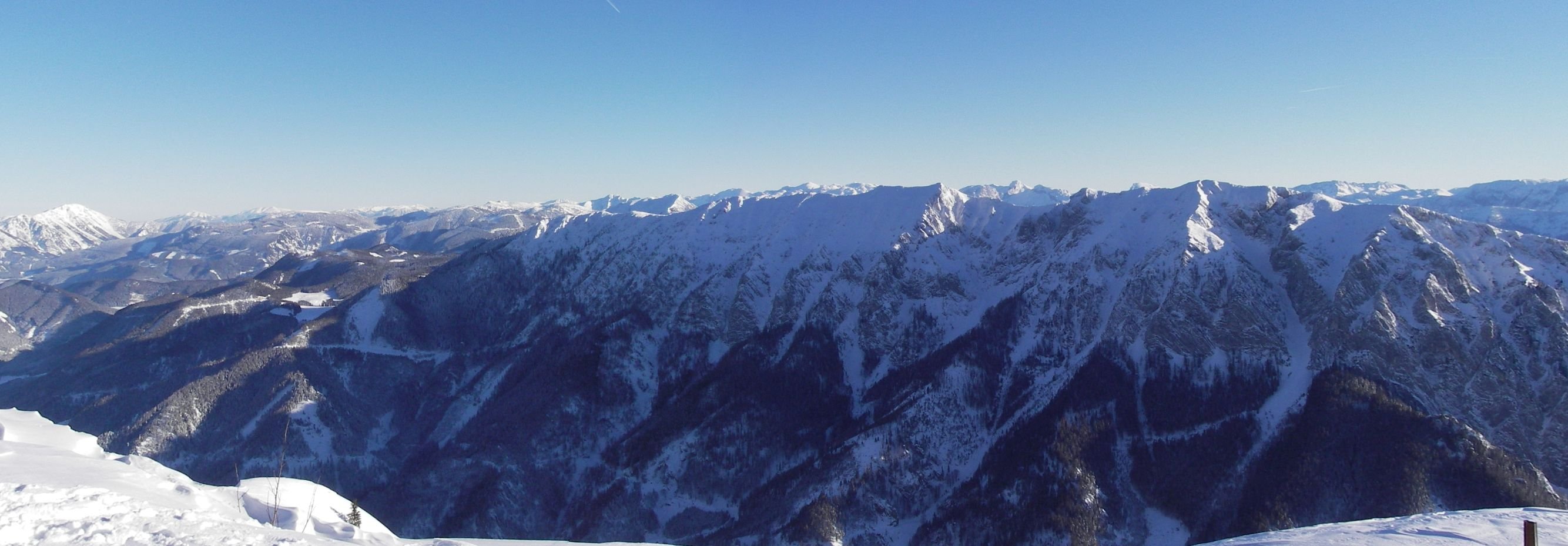 Abfahrt: Bis Niederscheibenberg wie Aufstieg bzw. ab Grat auch weiter östlich. Ab der Niederscheibenbergalm nicht am Sommerweg abfahren, sondern etwa 20 Minuten ostwärts aufsteigen bis Güterweg nach Norden abzweigt. Auf diesem (bei guter Schneelage können die Kehren durch freie Schläge abgekürzt werden) Abfahrt ins Tal. *Wenn die Abfahrt ins Tal nur auf dem Güterweg möglich ist, kann meistens am Straßenrand von Kleinpromau zum Parkplatz in Sandgraben abgefahren werden.
