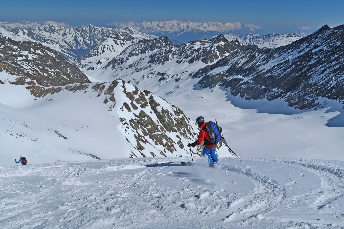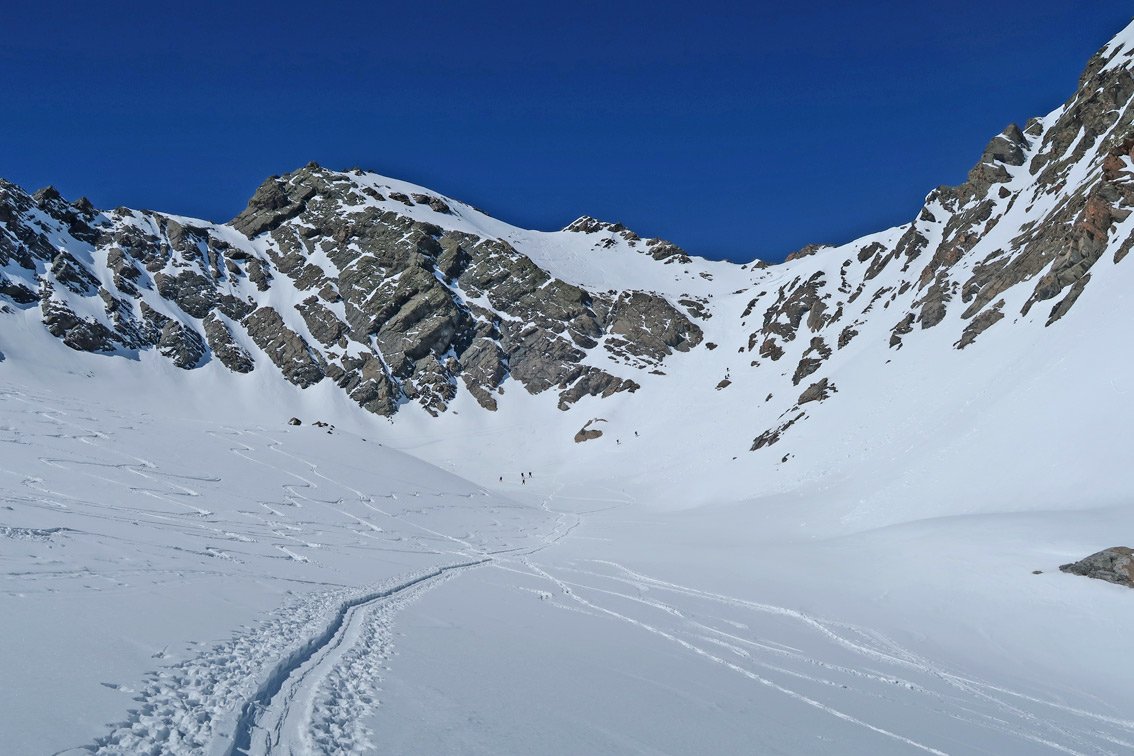 Interessanter, aber sehr langer Talanstieg in das Herz der Stubaier Alpen. Die Tour kann entweder an einem Tag vom Tal aus oder mit Nächtigung in der Neuen Pforzheimer Hütte gemacht werden. Aufgrund der Länge des Anstieges ist die Tour nicht überlaufen. Es bieten sich auch andere interessante Anstiege im Bereich der Neuen Pforzheimer Hütte an: Rosskarscharte, 3053 m, Schartlkopf, 2829 m und Lampsenspitze, 2876 m. Ein ausgefülltes Tourenwochenende auf einer urigen Skitourenhütte ist also garantiert.