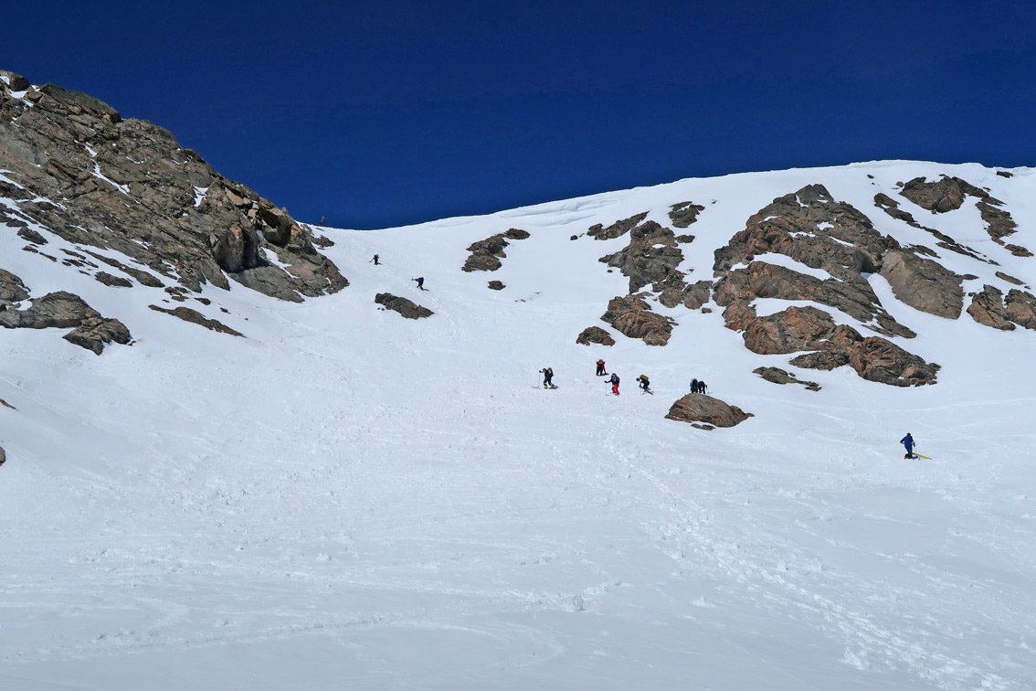 Bei hartem Firn lässt man die Skier vor der steilen Rinne stehen und steigt mit Steigeisen zum Gleirscher Fernerkogel auf (bei guten Verhältnissen die Skier aber mitnehmen). Die Tour nur bei sicheren Schneeverhältnissen durchführen! Man kann diese Tour natürlich mit dem Snowboard machen - das lange Tal ist aber sehr flach und man wird vor allem im unteren Teil der Abfahrt keine Freude haben.