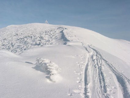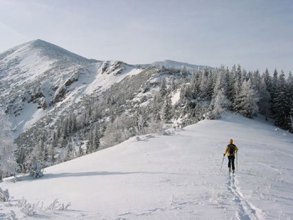 Vom Parkplatz (Donaudörfel) die bez. Forststrasse in den Saugraben verfolgend und auf ihr am bequemsten bis in den Waldhüttlsattel 1266m. Von dort in westlicher Richtung zum Göllerhaus. Kurze Fellabfahrt und weiter zur Göllerwiese wo der Blick auf den Kl. Göller frei wird. Die Nordflanke des Kl. Göllers querend (der Gipfel kann hier leicht in wenigen Minuten bestiegen werden) zu einem kleinen Kreuz. Ab hier Vorsicht wenn der Kamm verwächtet ist ! Einige kleinere Aufschwünge werden in weiterer Folge überschritten oder in der Nordseite knapp unterhalb gequert bis sich der eigentliche Göllergipfel aufsteilt. Etwas rechts des Kammes steiler aufwärts und in einigen Minuten flach zum Gipfelkreuz.