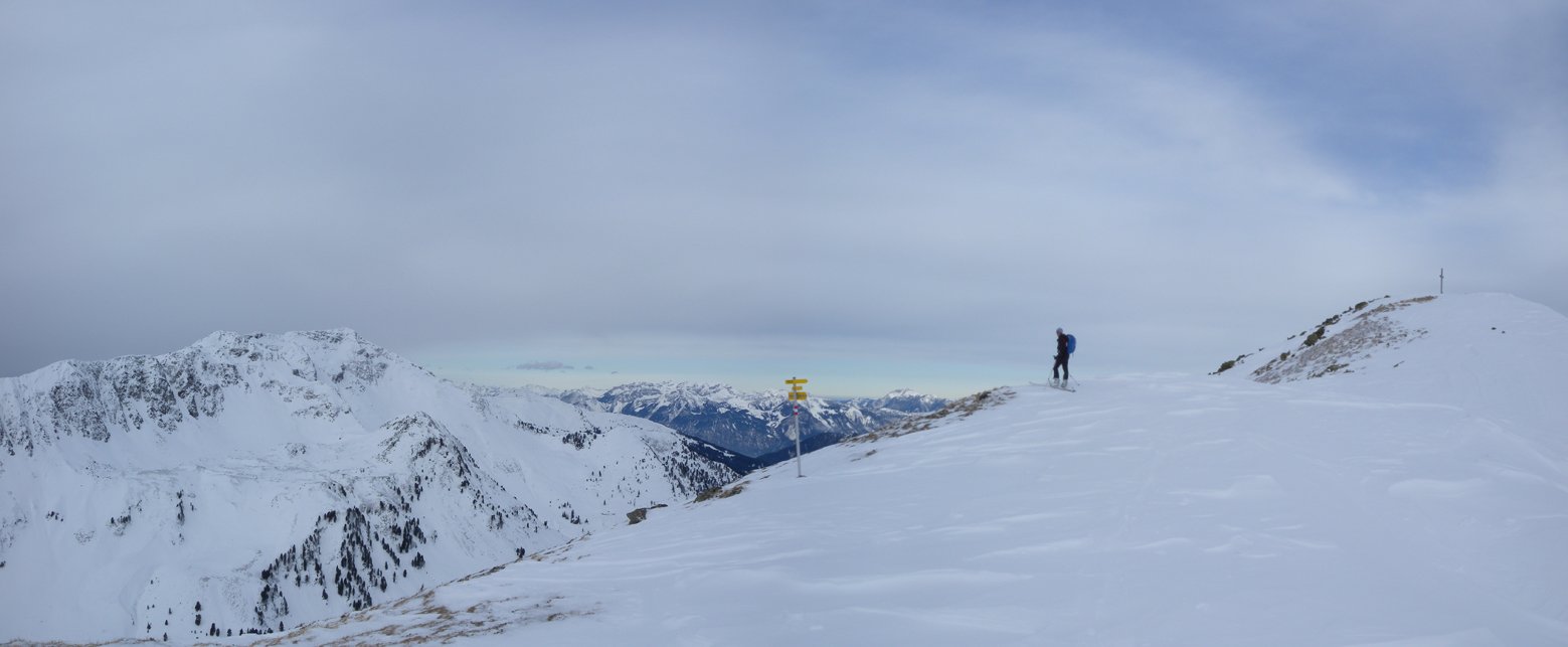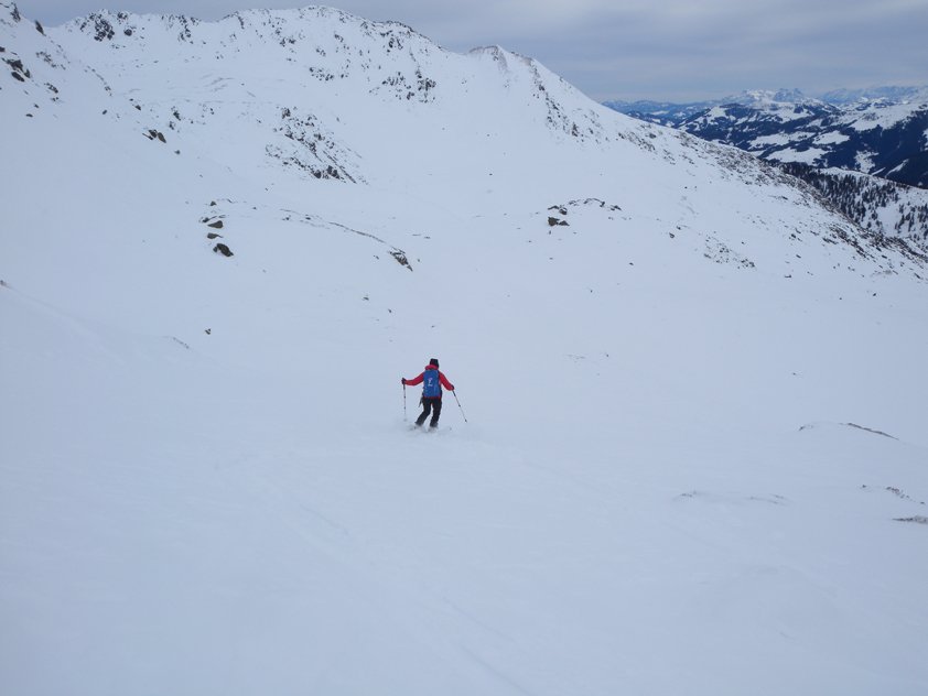 Der zwischen Sonnjoch und Großer Beil gelegene Gressenstein ist eher ein unbekanntes, aber durchaus lohnendes Tourenziel im Hochtal der Wildschönau. Bis auf die steile Passage unten am Kastensteig (die kann man zur Not links auf der Forststraße großräumig umgehen) eine einfache Skitour.