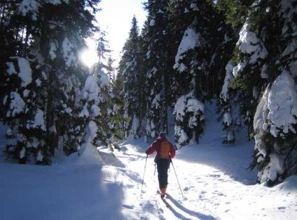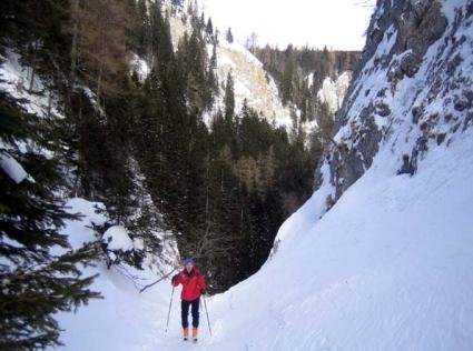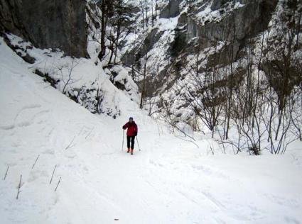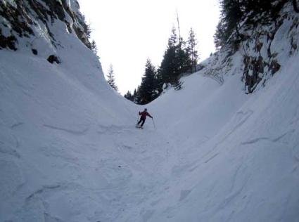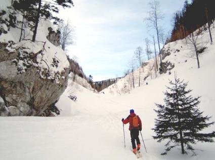 Eine schattige Tour mit flacher, tw. enger Grabenabfahrt. Nur bei ausreichend viel Schnee gut.