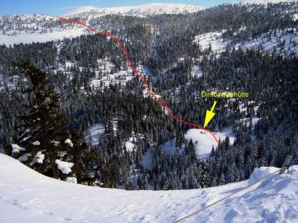 Abfahrtsvariante Bärengrube nur bei Firn und ganz sicherer Lawinensituation.