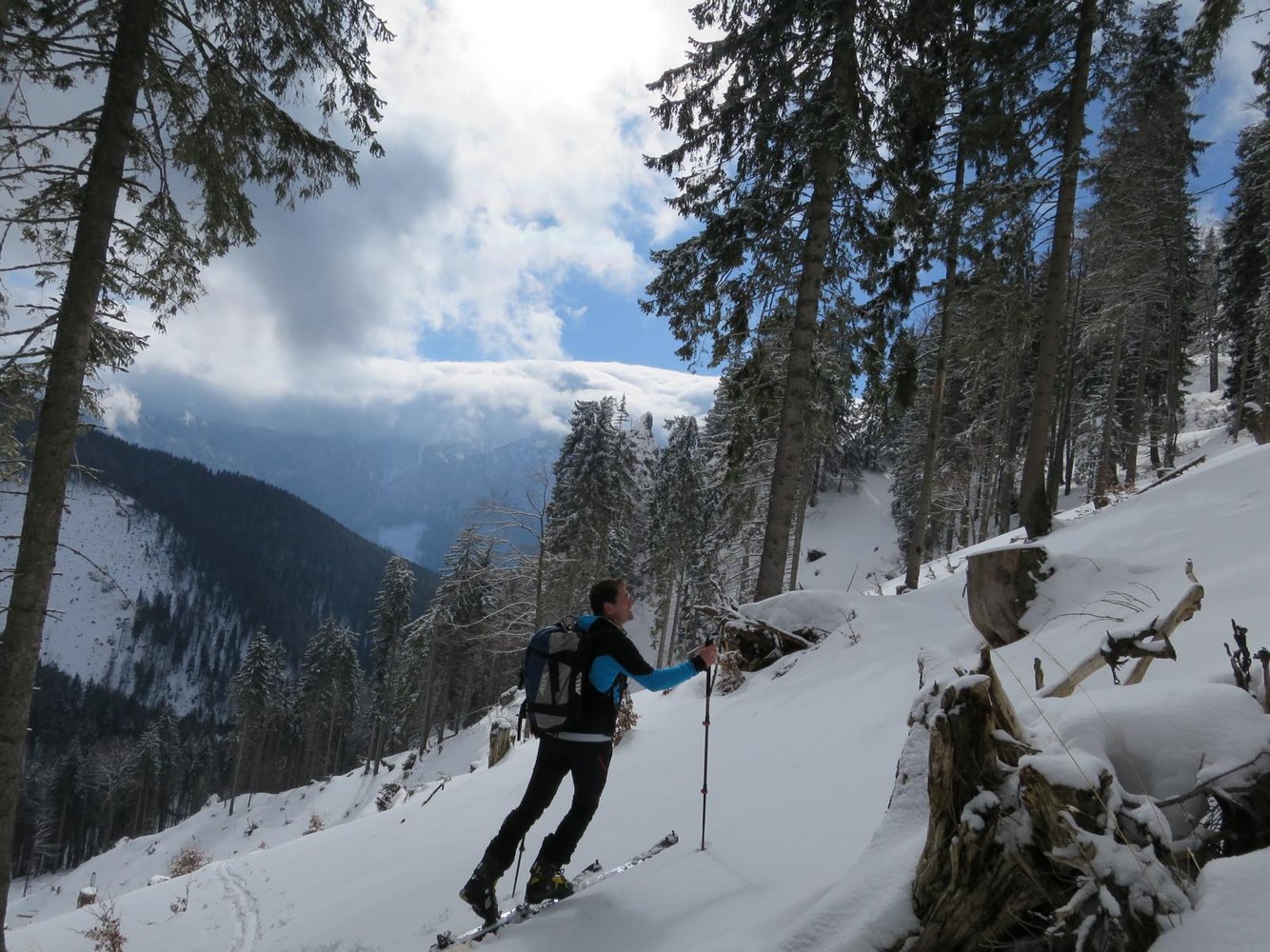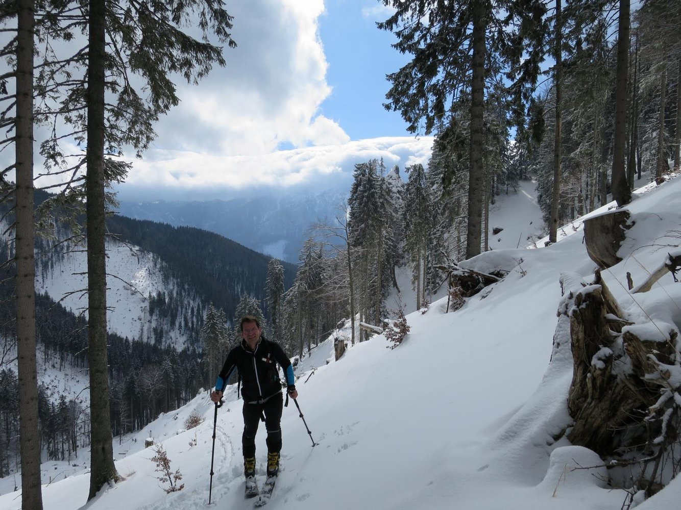 Abfahrt: Wie Aufstieg, vorsicht auf Lawnen zwischen Rücken und Forststraße und unter der Forststraße.