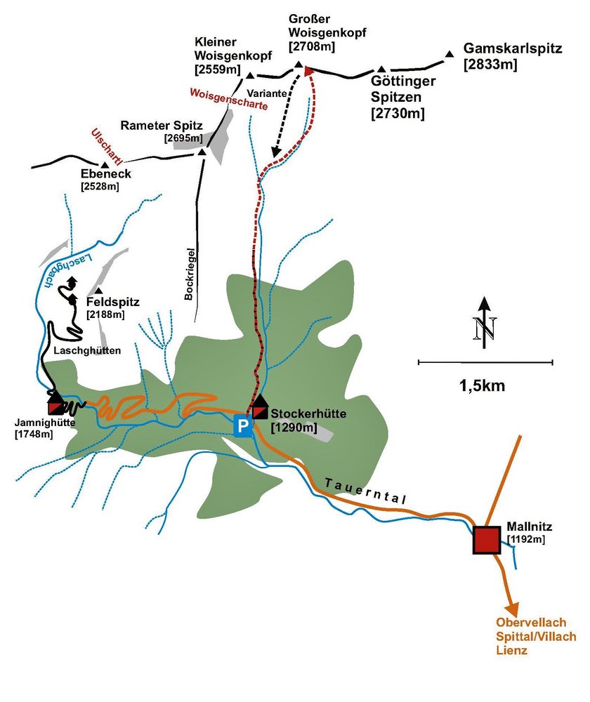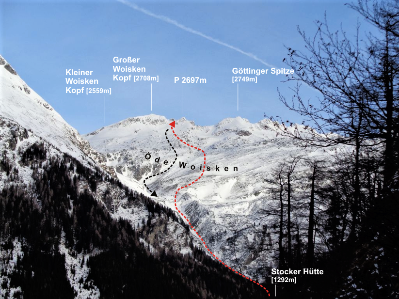 Die Skitour zum Woisken Kopf ist im Gegensatz zu den übrigen Routen im Mallnitzer Tauerntal eine sehr einsame Tour. Das südseitig ausgerichtete Woiskener Kar bietet feines, übersichtliches Skigelände, das im großen und ganzen einem weiten Bachlauf folgt. Auch die ersten 350 Höhenmeter, die im Wald über den Wanderweg verlaufen, stören nicht. Bei ausreichender Schneelage kann man den Weg auch problemlos abfahren. Positiv anzumerken ist auch die einfache Orientierung und die moderaten Schwierigkeiten. Egal ob im Hochwinter oder bei Firnverhältnissen im Frühjahr-hier kommt man immer auf seine Kosten. Vor allem wenn man den Skitag mit einem Einkehrschwung in der gut geheizten Stocker Hütte beendet…