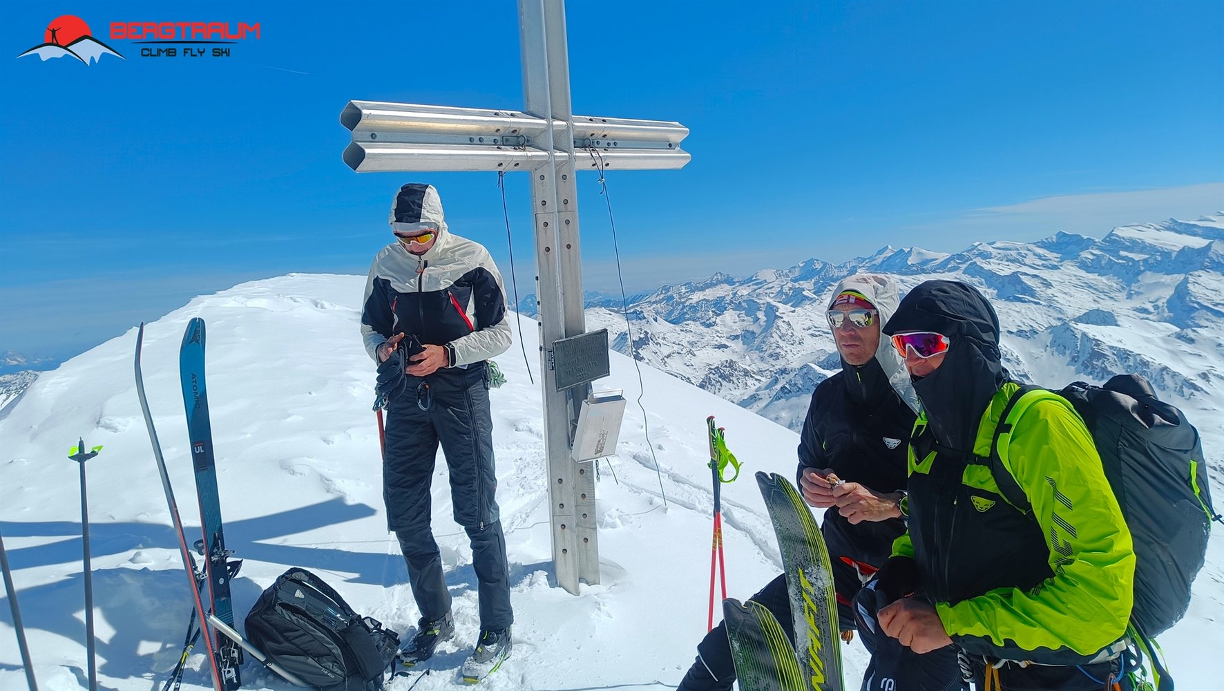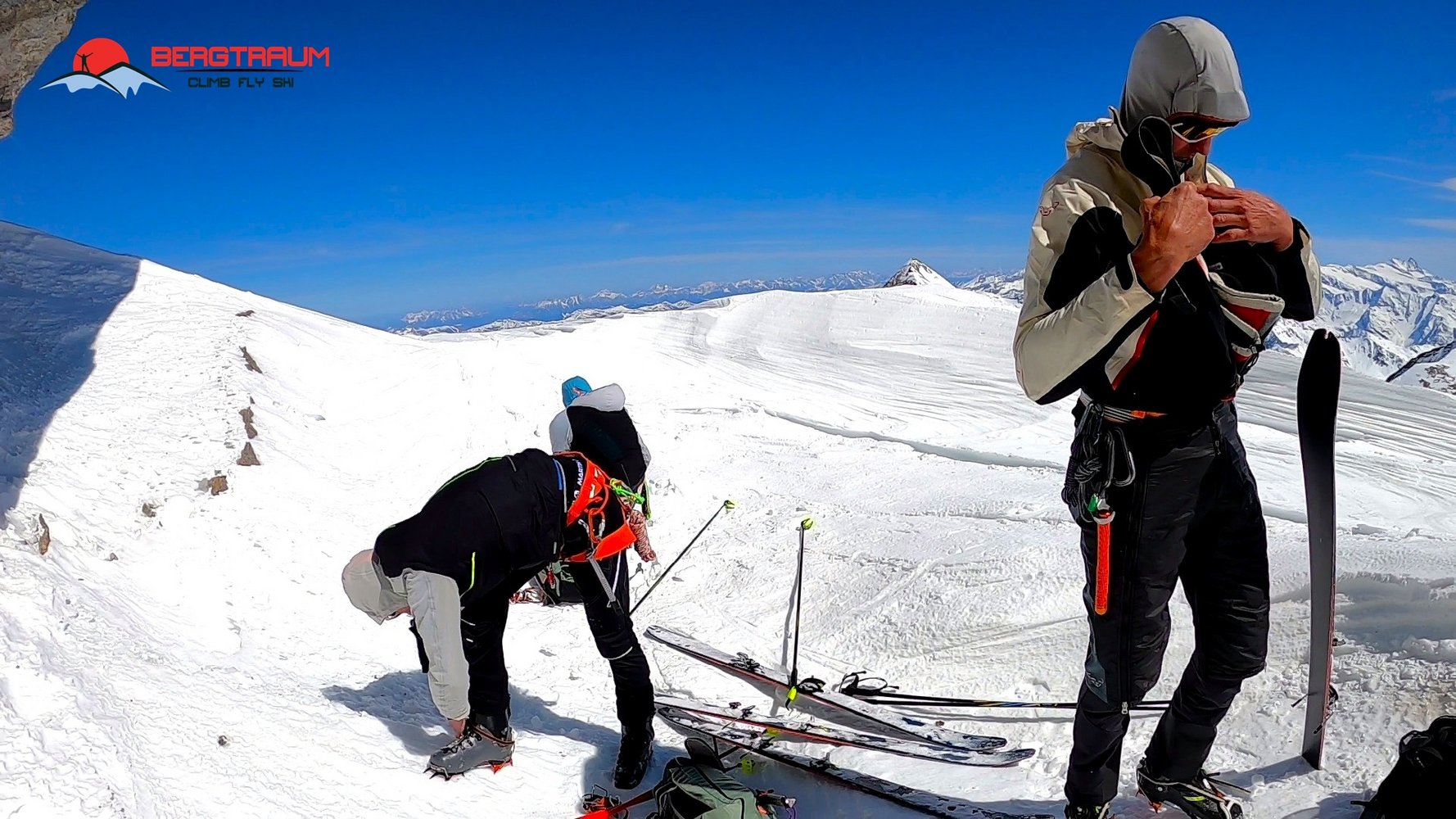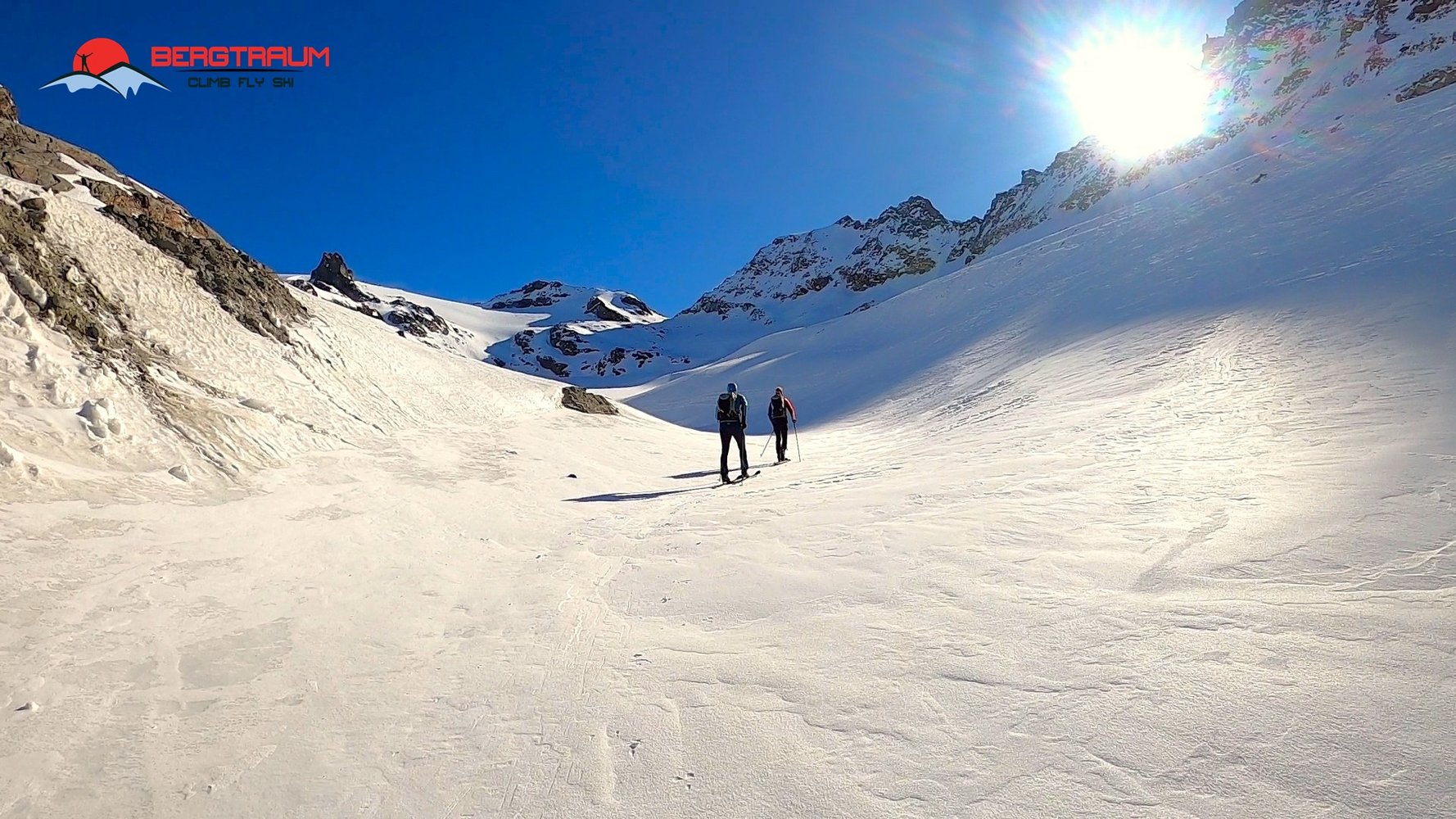 Nun in einem großen Rechtsbogen Richtung Nordwesten zum Gipfel des Hohen Zaun (3.451 m). Den sanft geneigten Westrücken hinunter bis ins Gletscherbecken, dieses in nördlicher Richtung überqueren und rauf auf die Schwarze Wand (3.511 m). Die letzten Meter über Blockgelände am besten ohne Ski machen. Zurück hinunter und durch die markante Scharte auf die steile Nordseite des Rainerhorns wechseln und weiter bis zum Gipfel (3.559 m). Nordwestseitig runter zum Gletscher und genau nach Norden zum flachen Gipfel des Kleinvenedigers. Retour bis in die Venedigerscharte und rauf auf den Großvenediger (3.657 m).