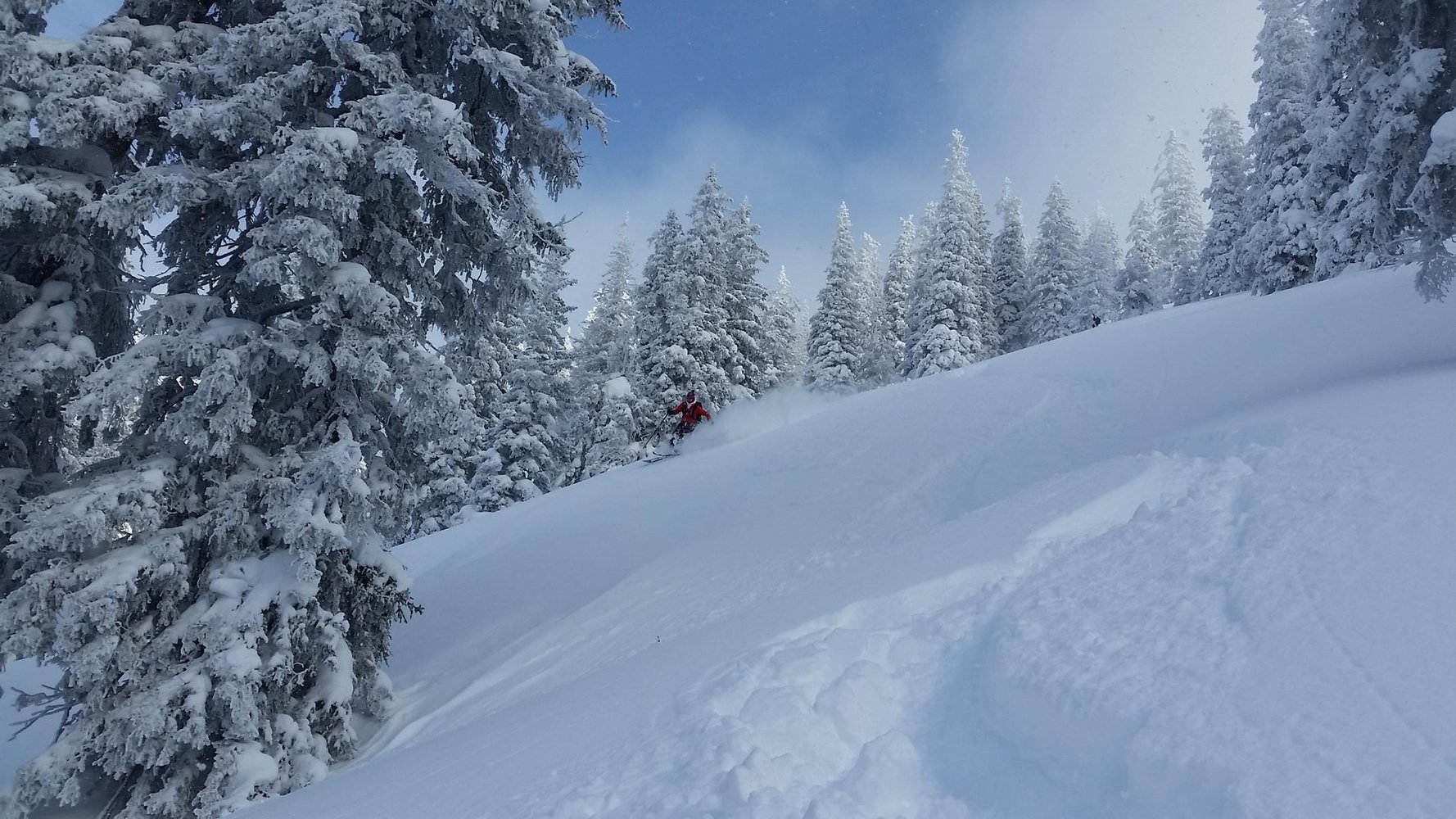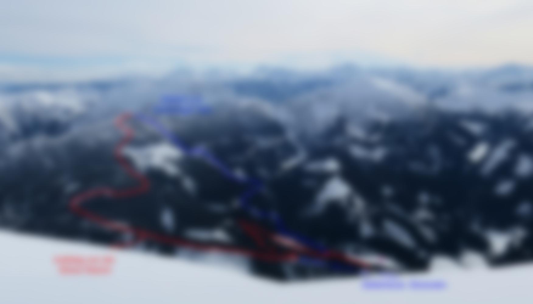 Vorsicht bezüglich Lawinengefahr auf den freien Hängen vor dem Gipfel.