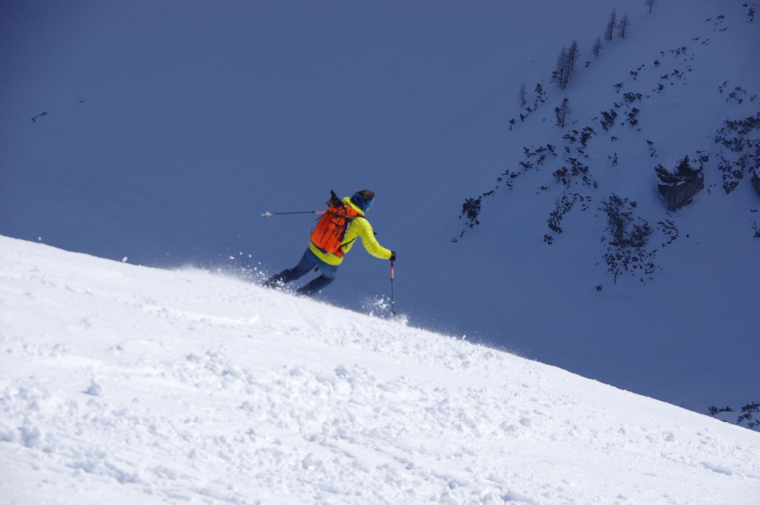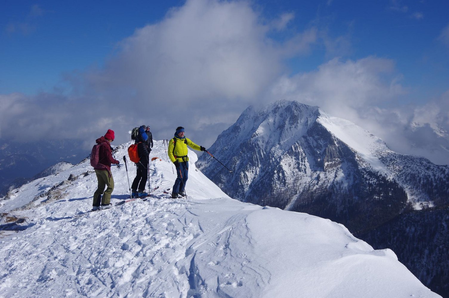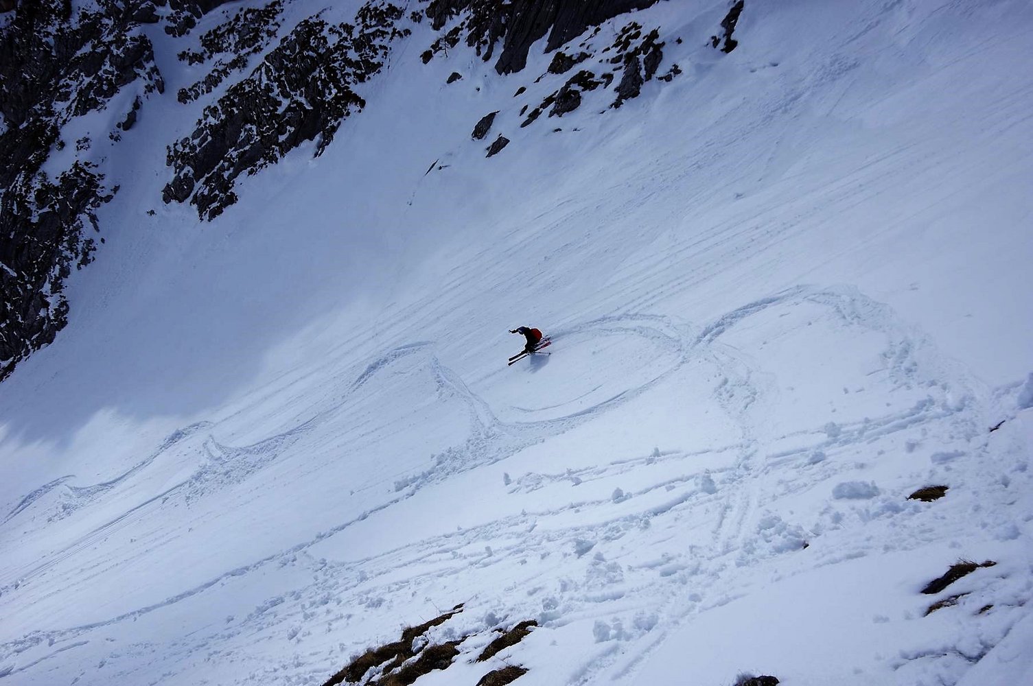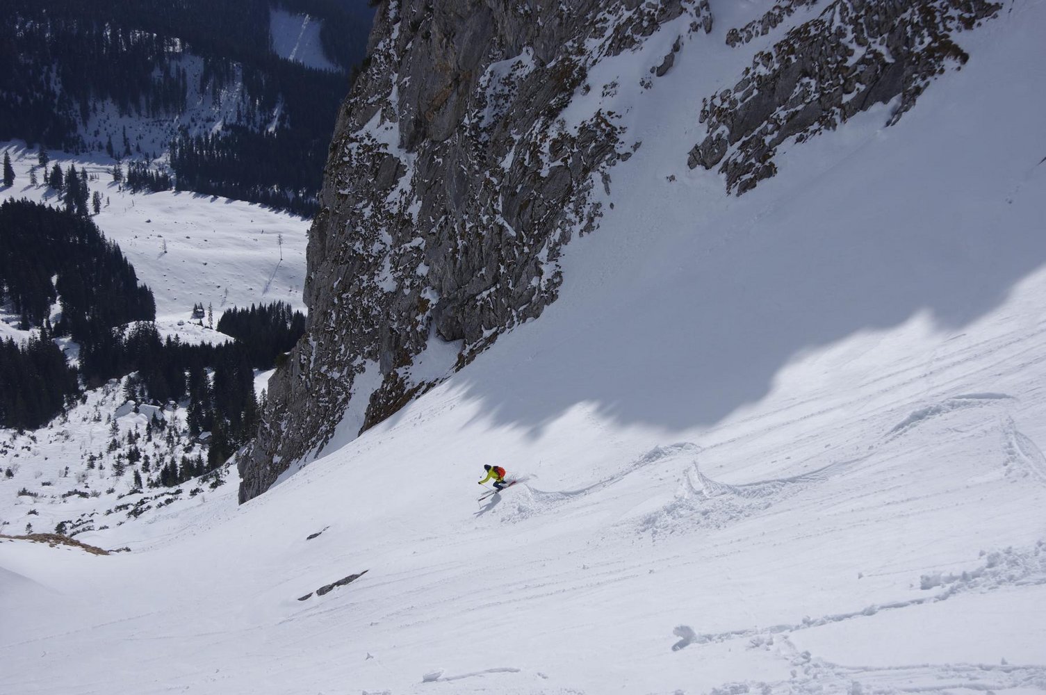 Abfahrt wie Aufstieg: Mann kann vom Gipfel bei sicheren Verhälnissen auch direkt in den gr. Kessel des Südkars abfahren.