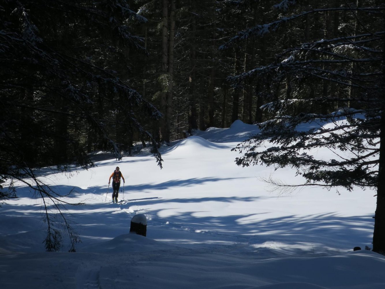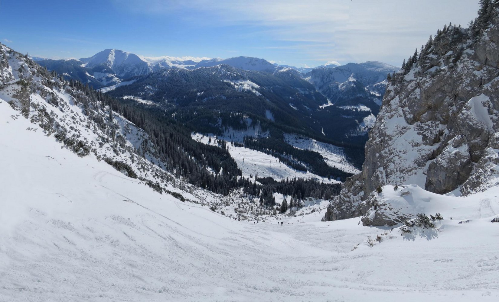 Großartige Skitour mit Doppelgipfelmöglichkeit im Johnsbachtal. Die Skitour folgt anfans Forststraßen und führt dann durch das steile Südkar hinauf zum Gipfelgrat. Hier wartet links die Stadelfeldschneid und rechts die Gsuchmauer. Eine der Top Skitouren im Johnsbachtal.