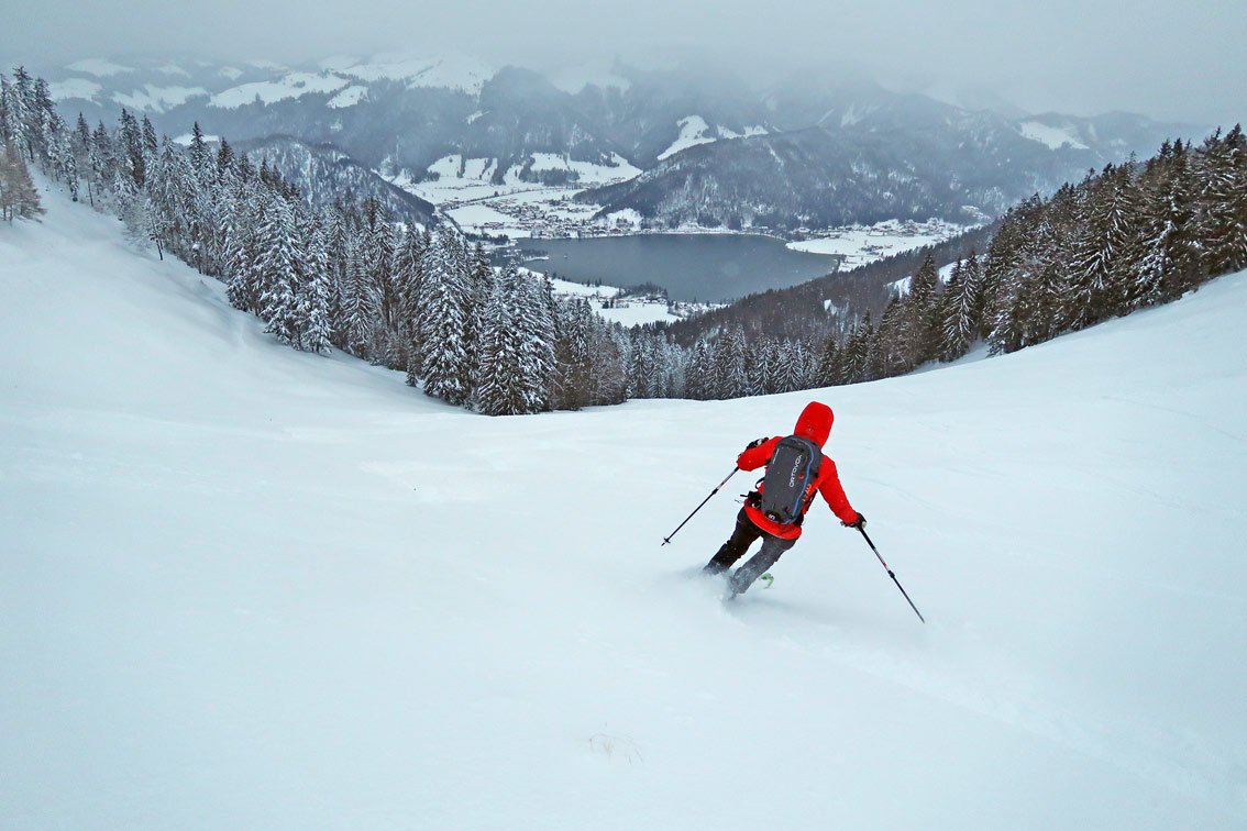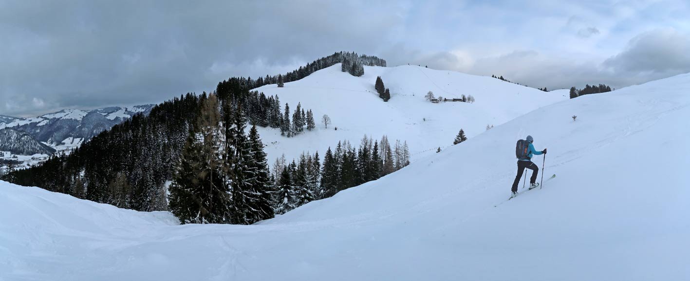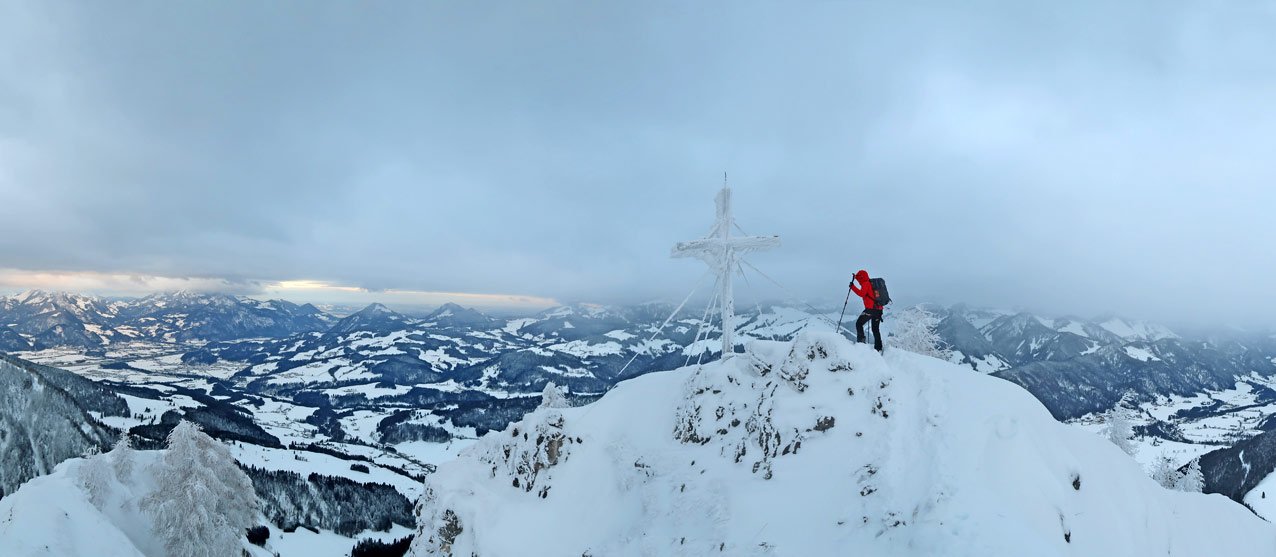 Schöne Skitour am Rande des Kaisergebirges - gehört zu den beliebtesten Hochwinter-Touren in der Region. Der Anstieg ist eine schöne Mischung aus flachen Wiesenhängen und kurzen steileren Passagen, sehr oft sieht man hinunter zum Walchsee oder zu den Spitzen des Kaiser Gebirges - genau das macht diese Skitour so reizvoll!