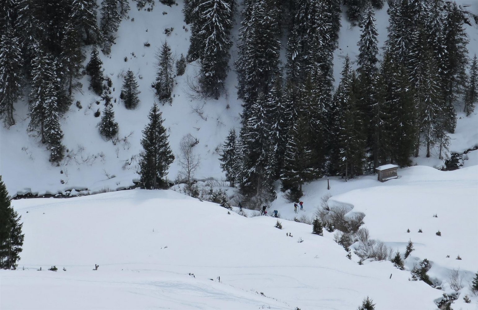 ABFAHRT: Wie Aufstieg oder direkt den steileren Nordhang zum Talgrund abfahren.
