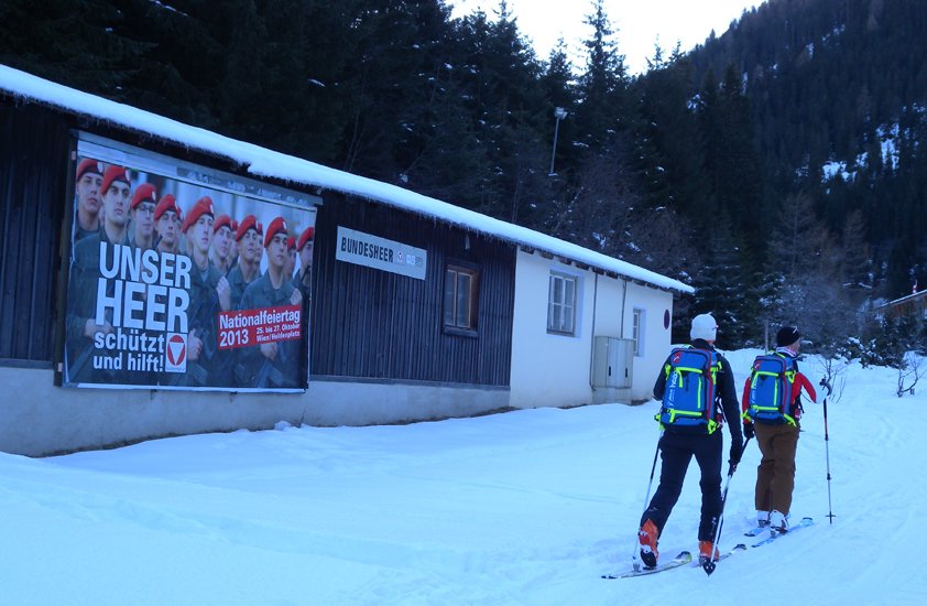 Auf der A12 bis nach Wattens und von dort hinauf in das Wattental - dort weiter bis zum großen Parkplatz unmittelbar vor dem Militärlager Walchen (Ende der Fahrmöglichkeit). Öffis: Mit der Bahn nach Wattens, weiter mit dem Bus bis Wattenberg. Ab dort entweder mit dem Taxidienst oder per Anhalter zum Lager Walchen.