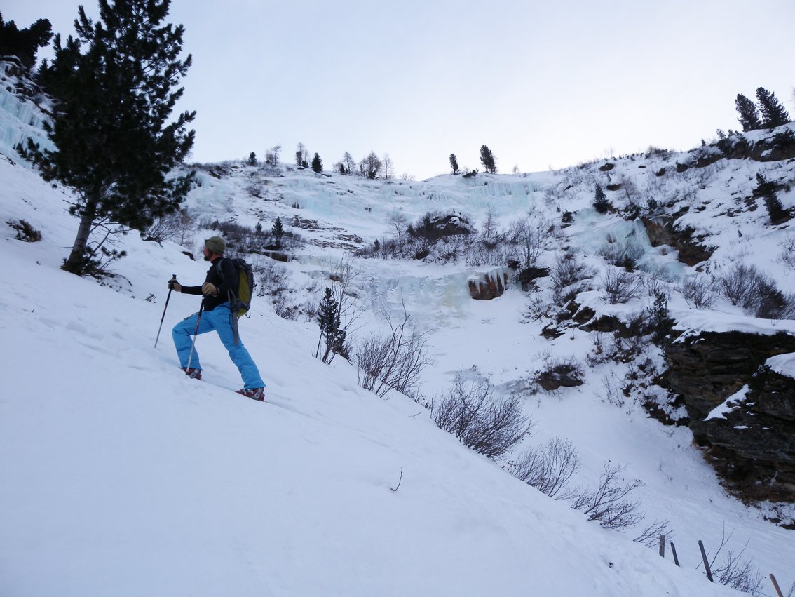 Die Querung unter der Zeischalm - im Bereich der kleinen Eisstufen - ist heikel.