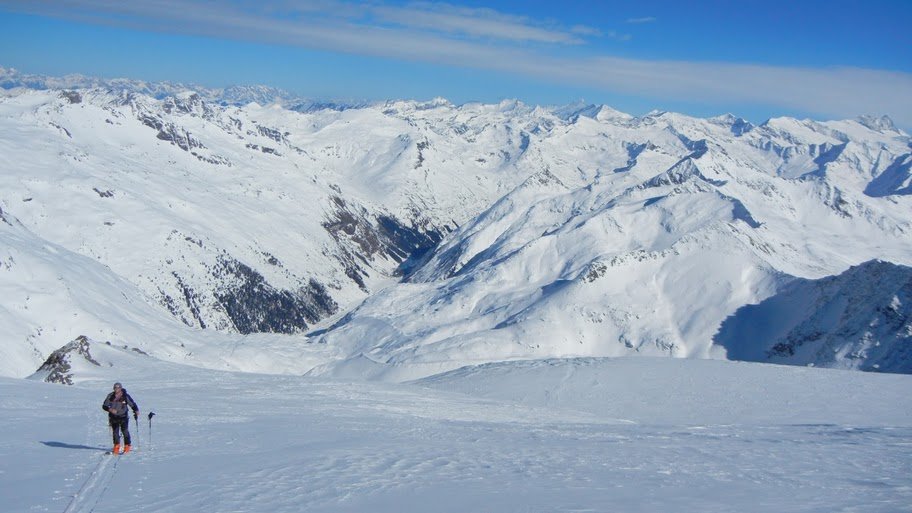 Eine der gewaltigsten Touren in den Hohen Tauern. Auch die Abfahrt gilt als einer der Schönsten in der gesamten Venedigergruppe! Vom Anmarsch durch ein flaches Tal bis zu Steilstufen in stark vergletscherter Umgebung ist einfach alles dabei. Die etwas mehr als 2000 Höhenmeter tun ihr Übriges dazu. Außerdem ist man auf diesem Gipfel meist viel einsamer unterwegs als auf seinem berühmten Nachbar, dem Großvenediger. Für sehr starke Geher und Gipfelsammler bietet sich ein Kombination der beiden Routen geradezu an.