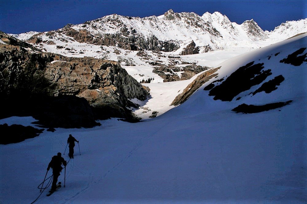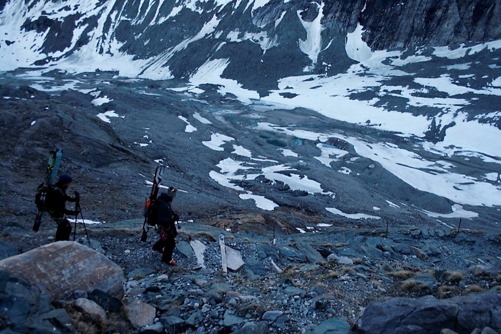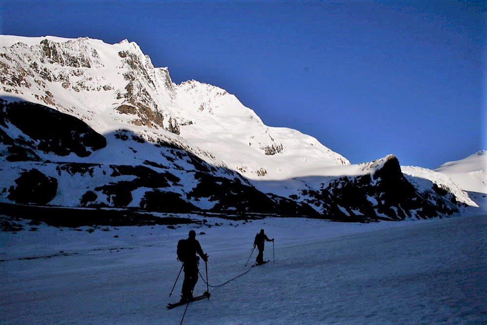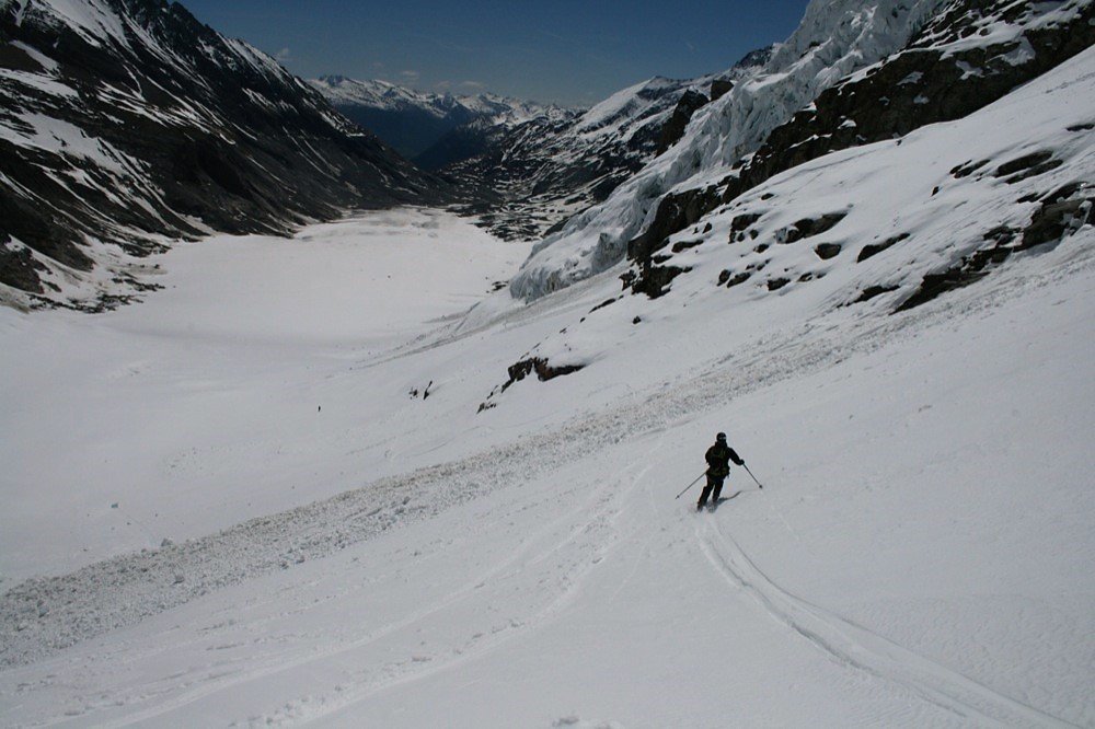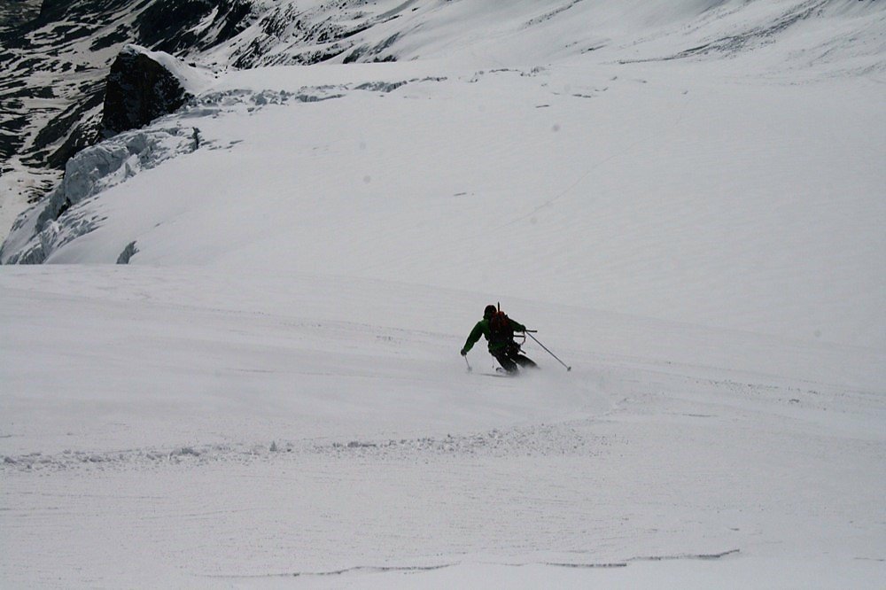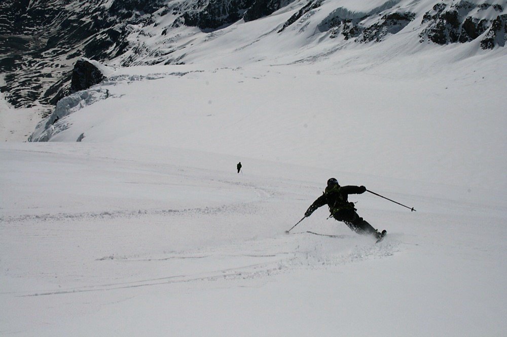 Die Abfahrt über den Hufeisenbruch ist mitunter spaltengefährdet!