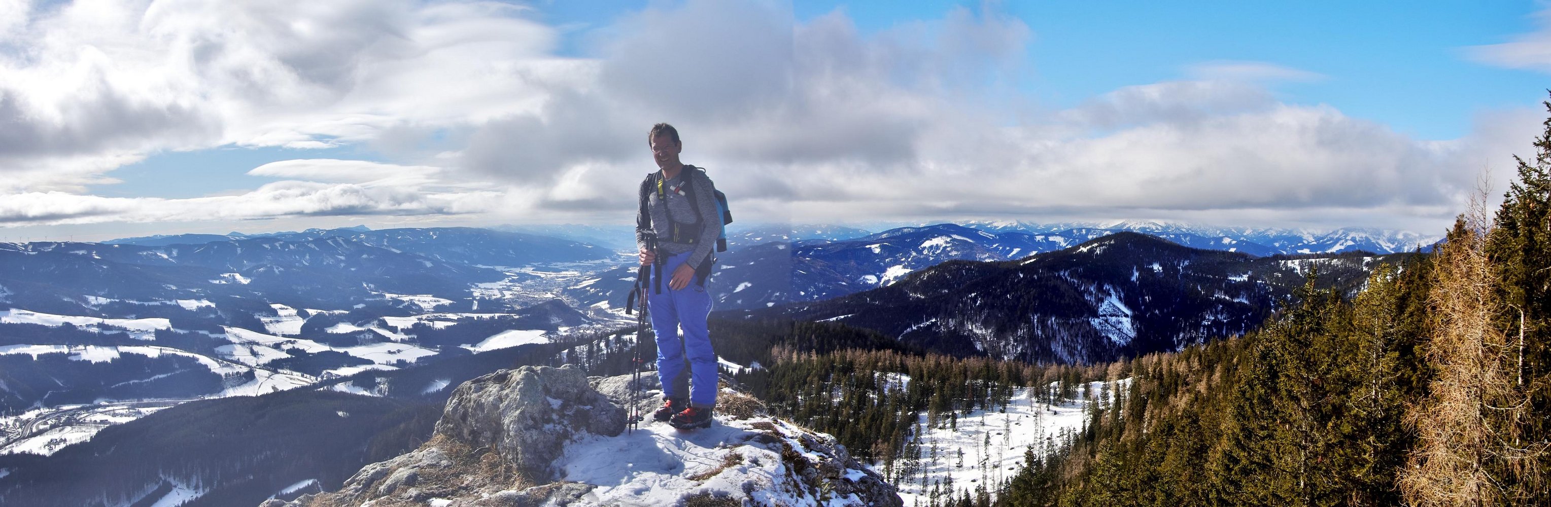 Südseitige Skitour von Spital am Semmering mit einem schönen Normalaufstieg, optional steilen Abfahrtsrinnen und Blick auf das Skigebiet Stuhleck. Diese Skitour lässt sich auch perfekt mit der Bahn erreichen.