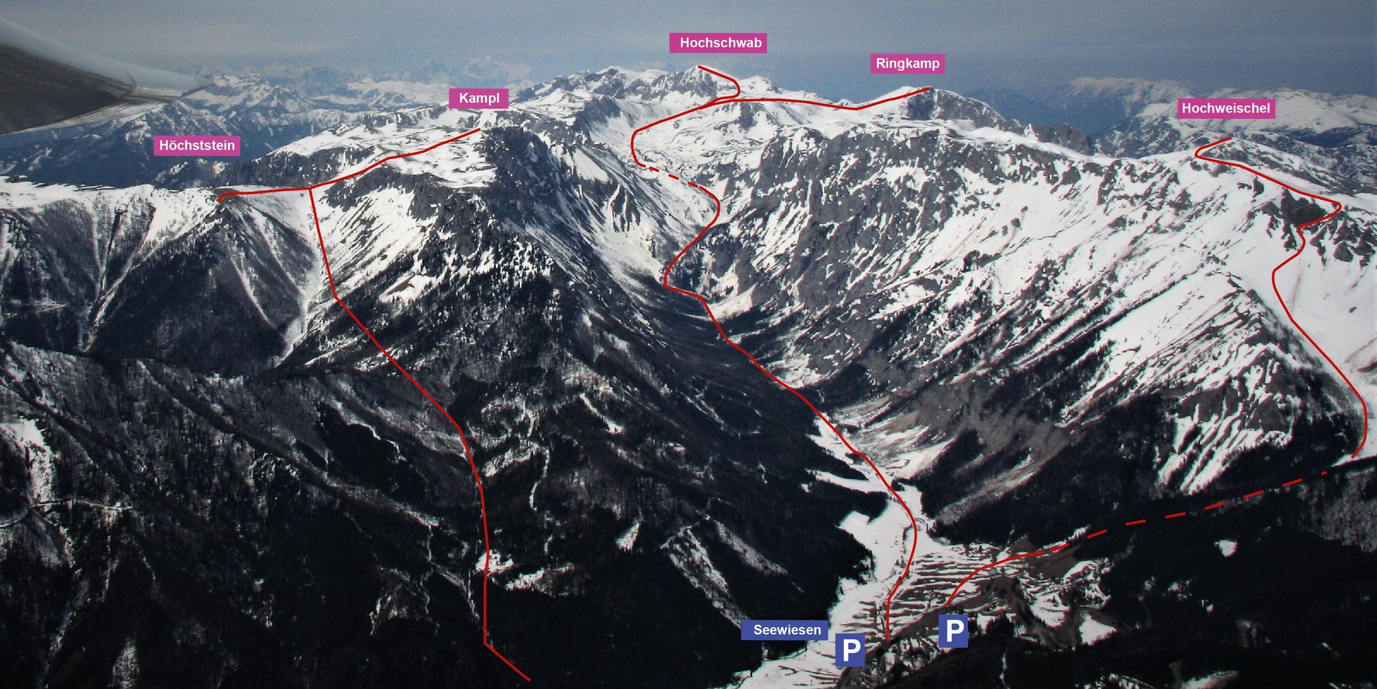Kürzere, landschaftlich schönes Gipfelziel im Tourengebiet Seewiesen - bei dieser Touren ist man oft alleine unterwegs. Auf dem Zlackenkamm stehen zwei Gipfel zur Auswahl. Die Tour hat im Bereich des Hackentörls einen kurzen Gegenanstieg.