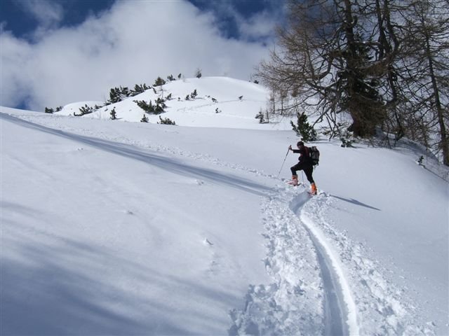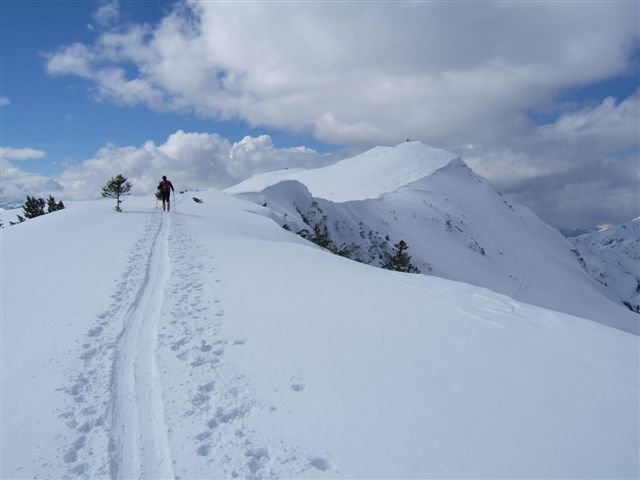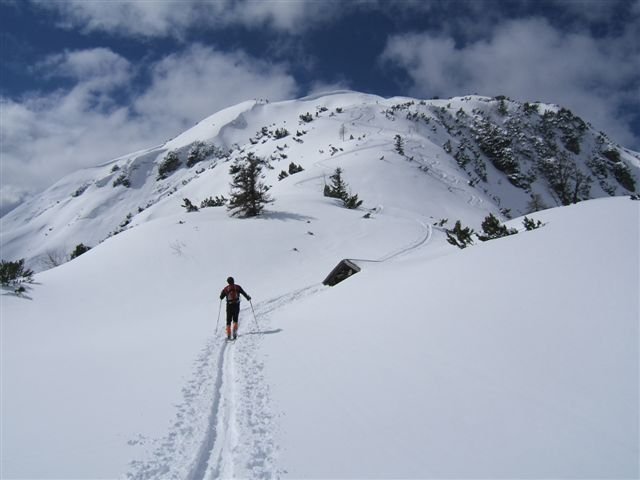 Vom Gasthaus Winkelmoos führt ein Weg ca. 500m kaum ansteigend Richtung Süden. Dort endet der Weg. Am Waldrand über einen Wiesenhang aufwärts, bis man im obersten Teil des freien Hanges nach links auf einem Steig in den Wald wieder Richtung Süden aufsteigt. Evtl. müssen hier die Schi kurz abgeschnallt werden, wenn wenig Schnee liegt. Über Wiesenhang bis zur Huschenalm aufsteigen. Von dieser links über eine Forststrasse aufwärts, (kann abgekürzt werden) und wieder über freie Hänge aufwärts Richtung Edenhausenalm.