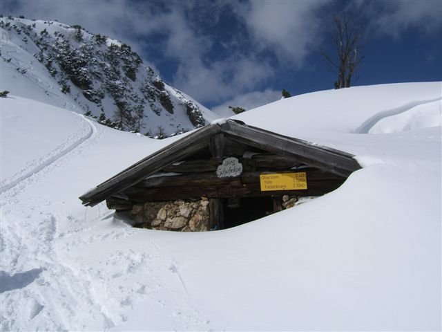 Als Variante kann vom Gipfel über den steilen Nordhang abgefahren werden (Achtung - Lawinensituation genau beschten!). Nach dem Gipfelhang schräg ostwärts zurück zur Edenhausenalm. Bei Schneemangel im unteren Waldabschnitt kann man von der Edenhausenalm dem Weg zum Weiler Rohr folgen und dann über eine Wiese wieder zum Ghf. Winkelmoos zurück queren.