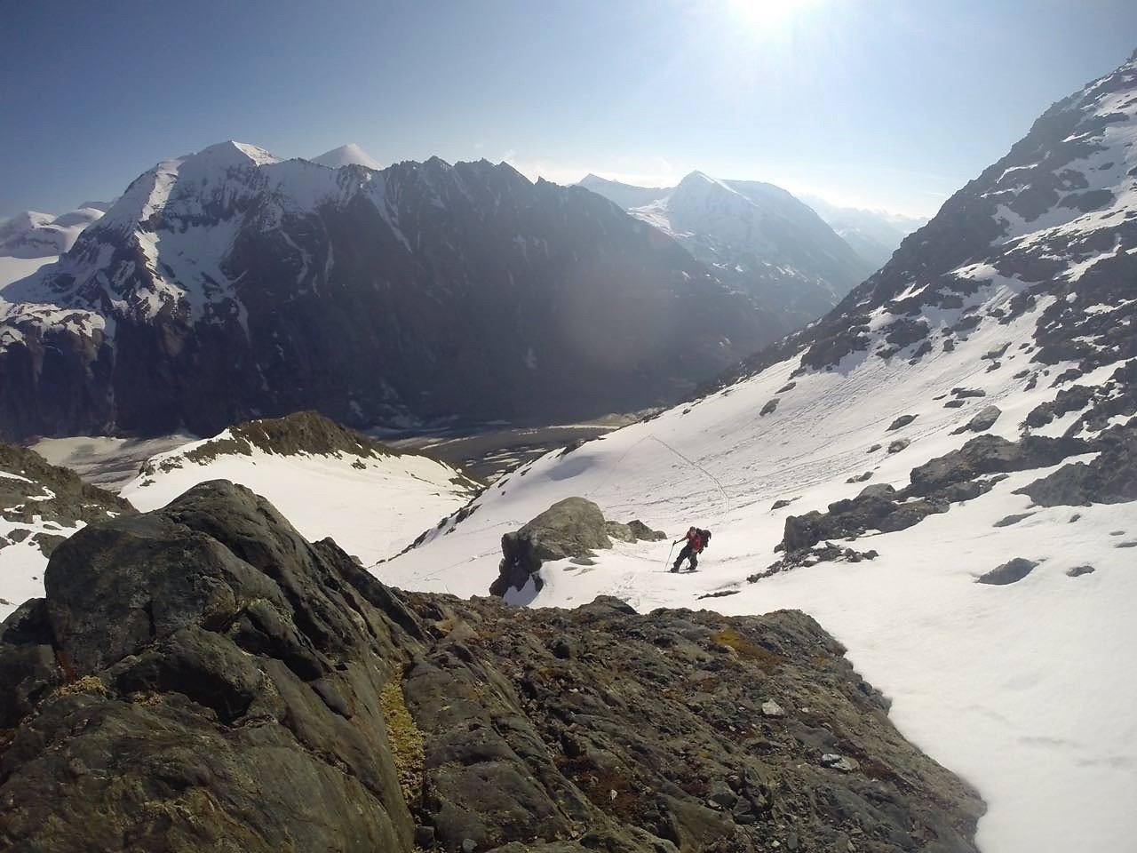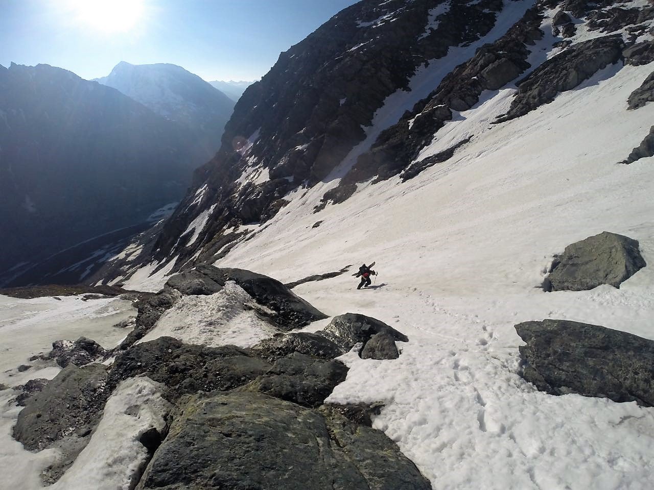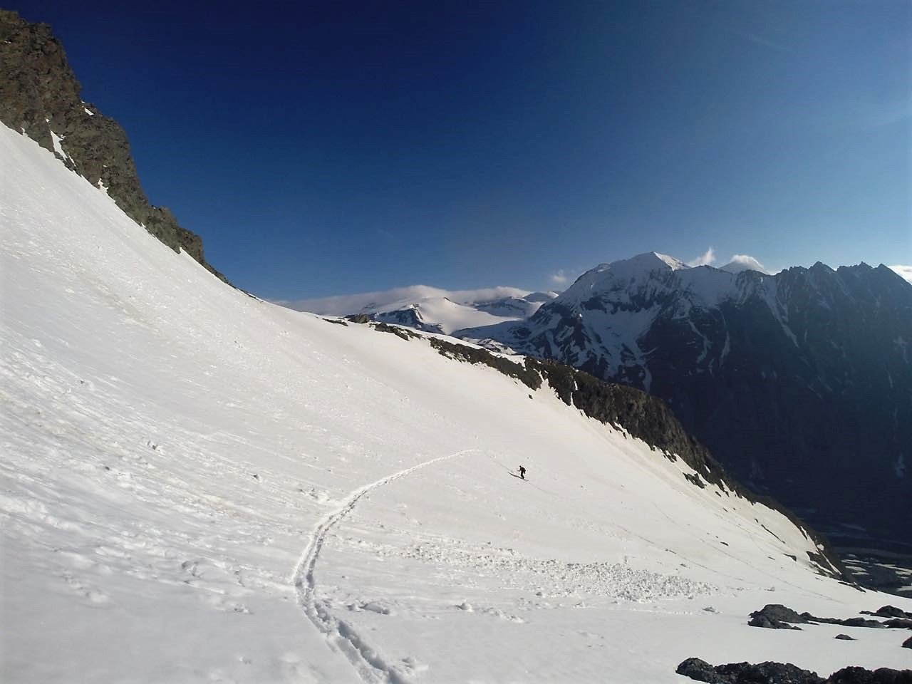 Lässige Skitour im Schatten des höchsten Bergs Österreichs. Die Route teilt sich grob in zwei Teile: Im unteren Bereich steilt der Hang von der Pasterze auf und verengt sich zu einer Rinne, die anschließend wieder weiter wird. Nach einer kurzen Engstelle baut sich eine schöne, gleichbleibend steile Flanke (ehemaliges Kellersbergkees) auf, die man in weiten Zügen herunterfahren kann. Tolles Skigelände und wenige Befahrungen zeichnen diese Route aus! Leichte Orientierung. Einziges Manko: Der Gegenanstieg von der Pasterze zurück zum Auto.