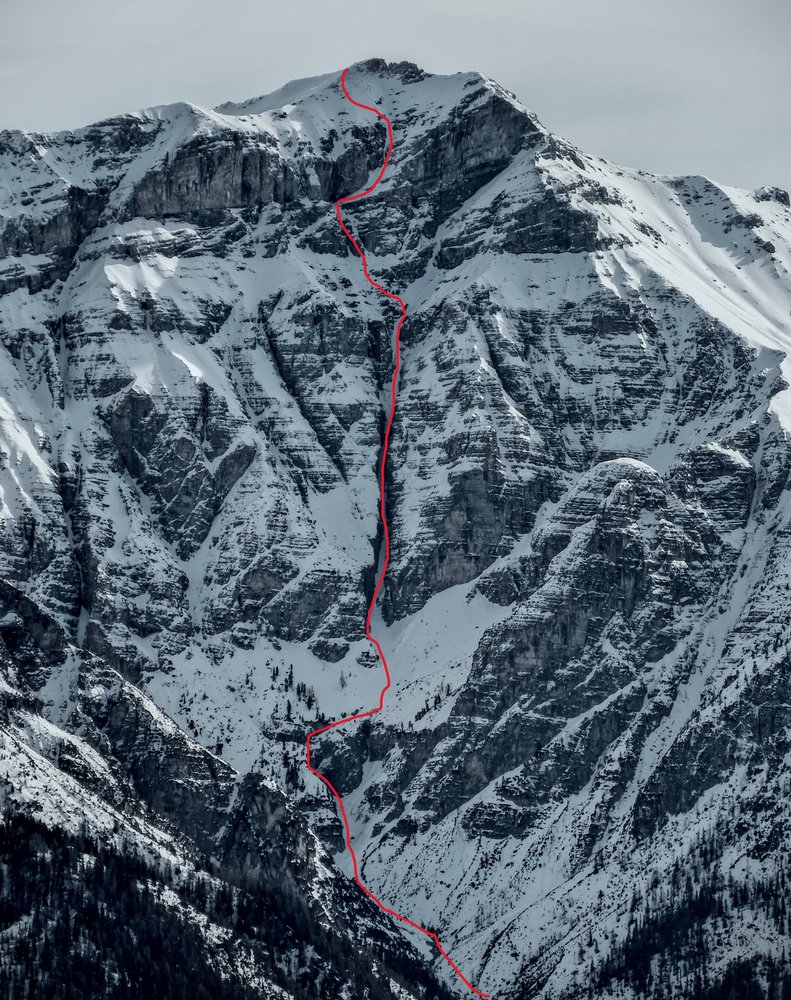Abfahrt Nordrinne: Vom Gipfel fährt man kurz entlang der Aufstiegsspur ab, bevor man links in die Nordwand einfährt. Der Einstieg in die Nordrinne befindet sich direkt in der Falllinie des Gipfelkreuzes. Bei wenig Schnee folgt dort die erste Abseilstelle (je nach Schneelage reizt man hier bereits die 30 m fast aus). Nach dieser folgt man einer Rampe nach rechts unter einer sehr beeindruckenden Felsmauer. Bevor es auf der anderen Seite der Rampe wieder bergauf gehen würde, biegt man nach links zur steilsten Stelle der Route ab (45 Grad plus; diese Stelle ist Stand Februar 2024 nicht mehr durchgängig befahrbar, dort wurde inzwischen eine zweite Abseilstelle eingerichtet). Dann erreicht man nach circa 250 Hm die dritte Abseilstelle. Bei dieser Abseilstelle brauchten wir ein 60 Meter Seil! Hat man diese Abseilstelle hinter sich, folgt man der Hauptrinne bis zu dem berühmten großen Klemmblock. Bei diesem ist auf der rechten Seite ein Bohrhaken zum Abseilen. Nach dieser Abseilstelle folgt man der Rinne bis zu ihrem Ausgang. Bei wenig Schnee – oder aufgrund von Veränderungen in der Rinne (man erinnere sich an die Unwetter 2022) - kann man Stand Februar 2024 auch unter dem Klemmblock hindurchfahren. Nach dem Ausgang ca. 50 Höhenmeter abfahren, bis man nach rechts abbiegt und dadurch eine nicht zu befahrende Rinne umgeht. Danach den linken Hang so lange queren bis man zum Sommerweg gelangt. Von dort ist man in 25 Minuten in Kampl.