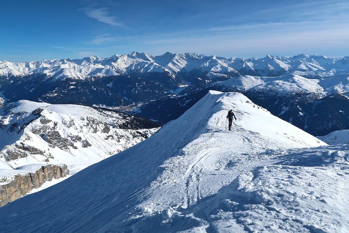 Der normale Aufstieg zum Gipfel ist teilweise steil und ausgesetzt und sollte nur bei sehr sicheren Schneeverhältnissen gemacht werden. Im Frühjahr ist zeitiger Aufbruch nötig, da die Hänge im Bereich der Kugelwand schnell in der Sonne sind!