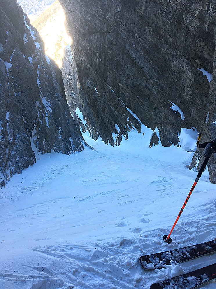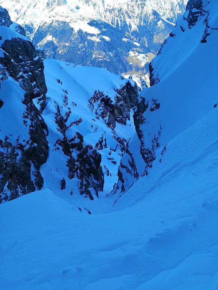 Eine sehr ernste alpine Unternehmung, die mehr mit einem Abenteuer zu tun hat, als mit unbegrenztem Fahrgenuss. Für jeden der sich jedoch in das Rinnensystem der Kesselspitze Nordwand traut eine Erfahrung, die noch lange im Gedächtnis verankert bleibt.