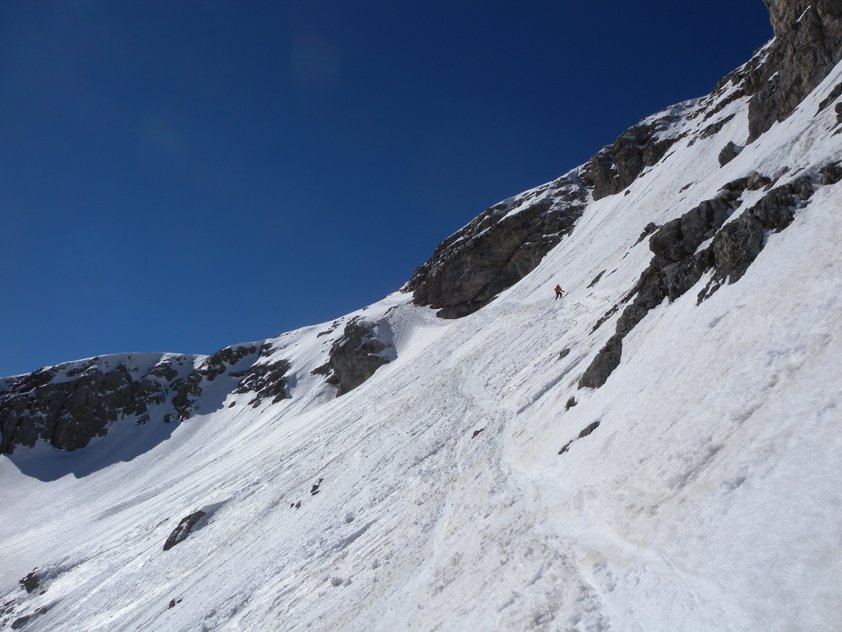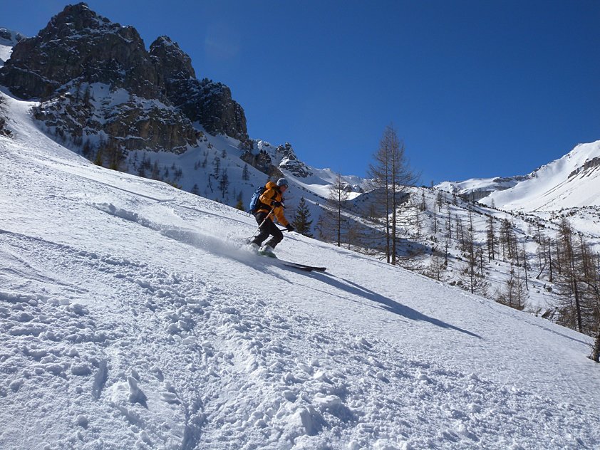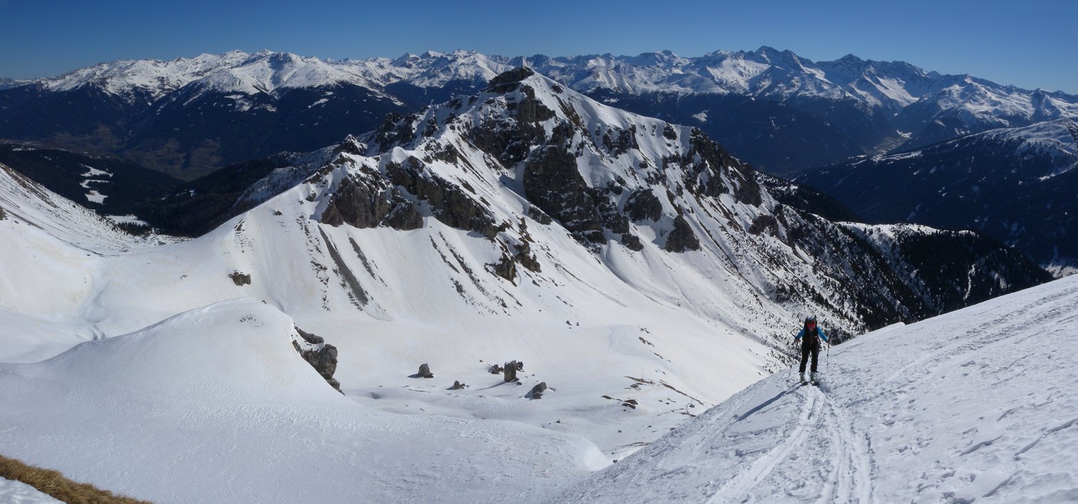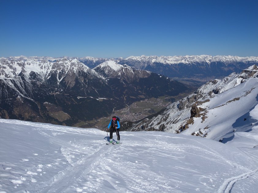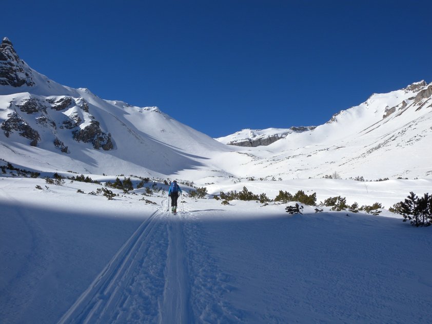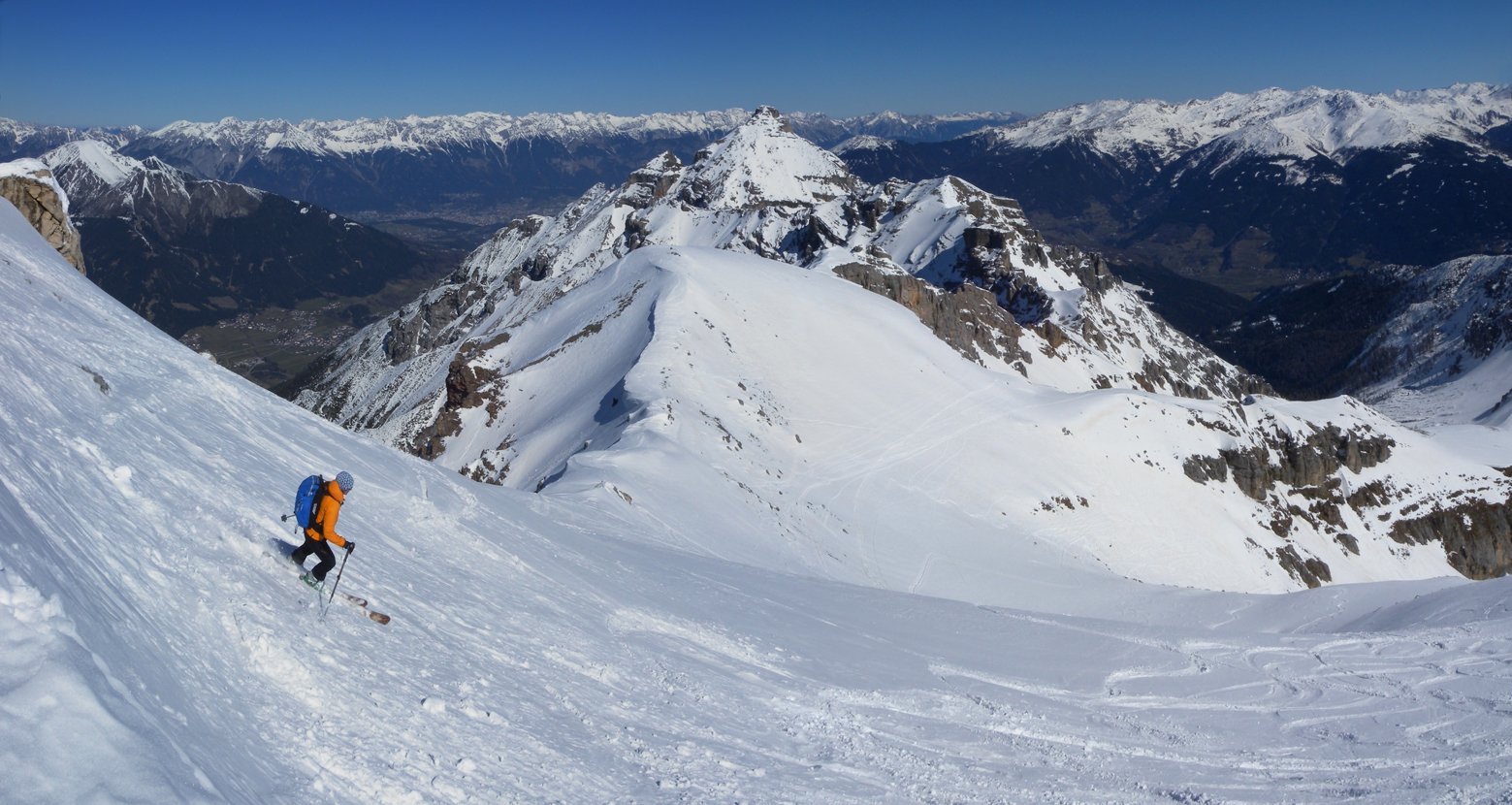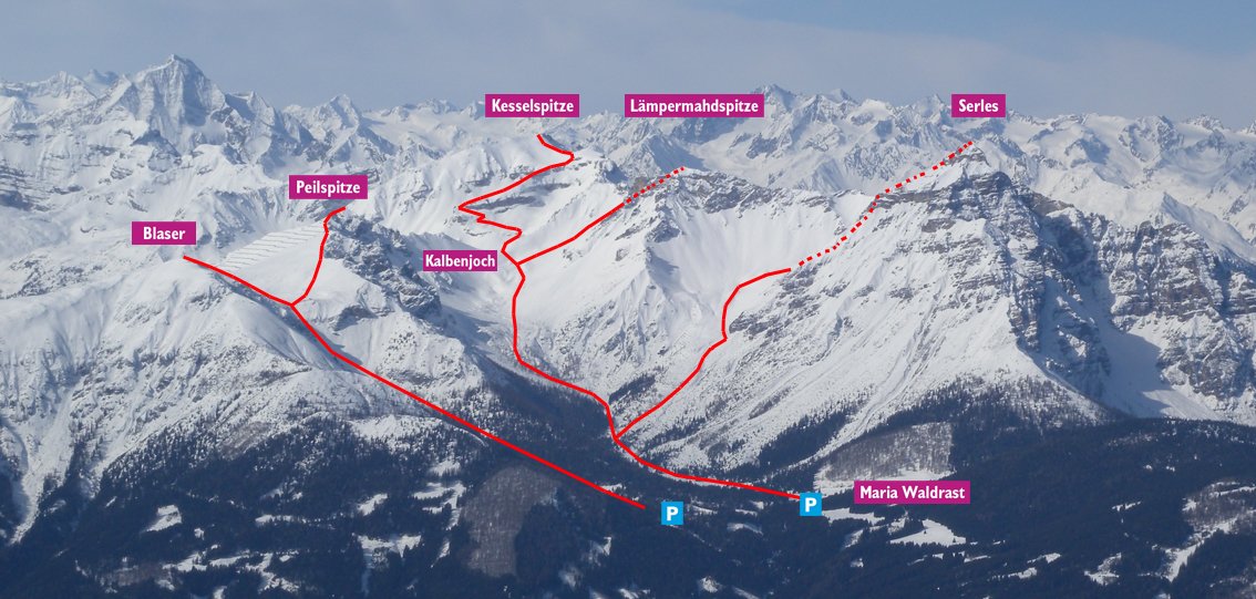 Die Tour ist steil und ausgesetzt und sollte nur bei sehr sicheren Schneeverhältnissen gemacht werden. Im Frühjahr ist zeitiger Aufbruch nötig, da die Hänge ab dem Kalbenjoch schon Morgens in der Sonne sind!
