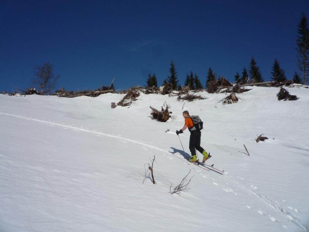 Schlüsselstelle: Abfahrt vom Hinteren Proles in die Krautgärten mit sehr hoher Lawinengefahr. Vorsicht auch bei Abfahrt von der Hochalm nach Frein insbes. bei der Einfahrt!