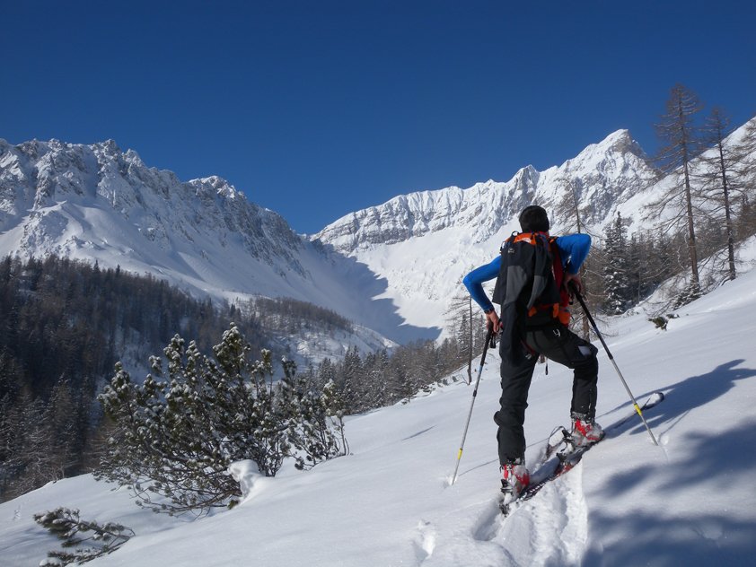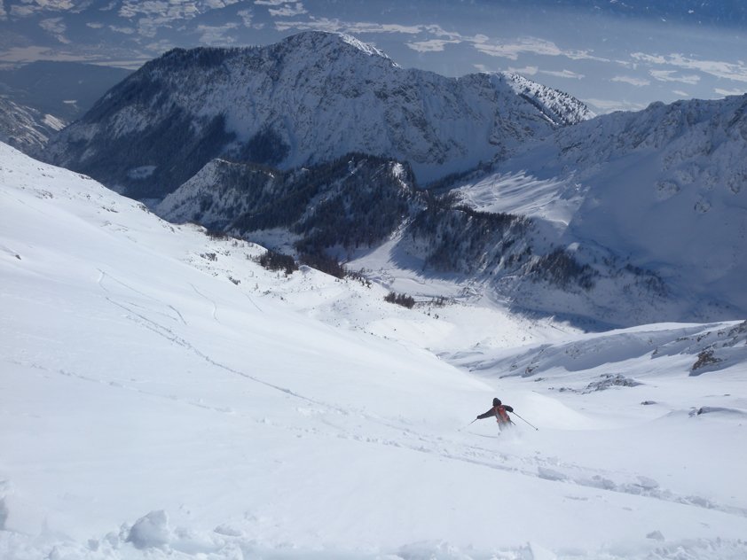 Die Tour gehört zu den steilen Highlights im Halltal und sollte aber wirklich nur bei sehr sicheren Schneeverhältnissen gemacht werden! Vor allem der obere Teil dieser Tour ist sehr steil, aber auch die Querung unterhalb der Speckkarspitze verläuft in einen großen Lawinen-Einzugsbereich. Die Tour wird in der Regel im Hochwinter gemacht, die Tage mit guten Verhältnissen sind aber selten.