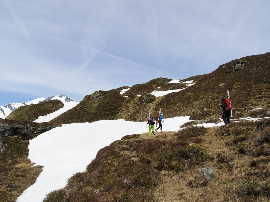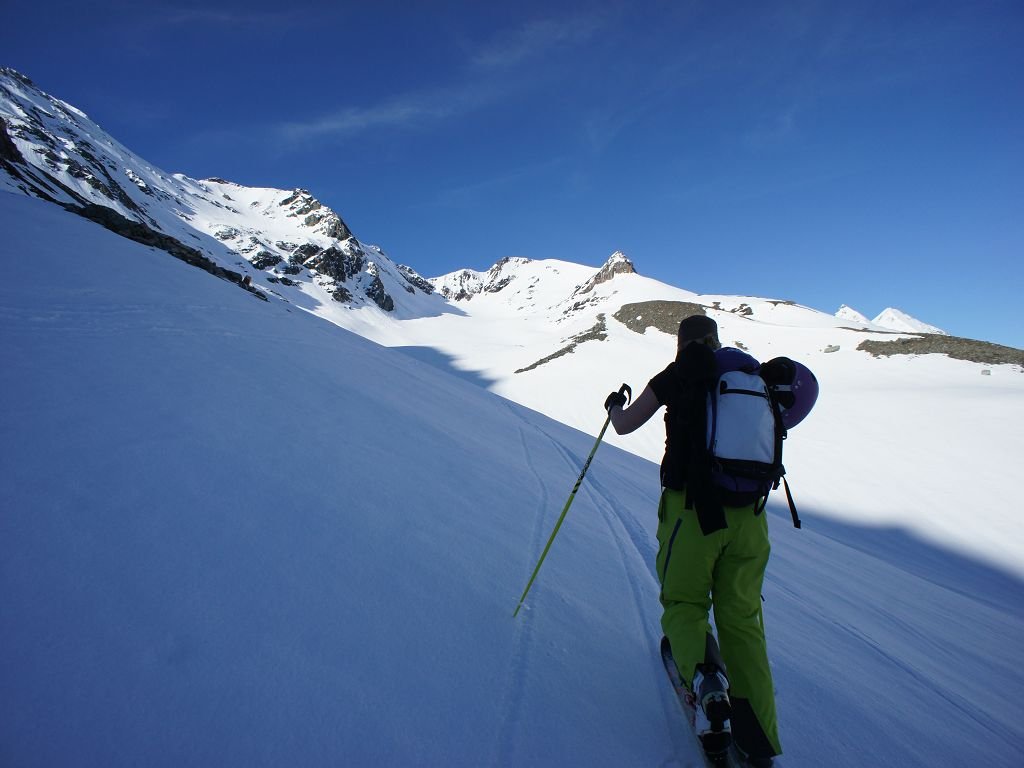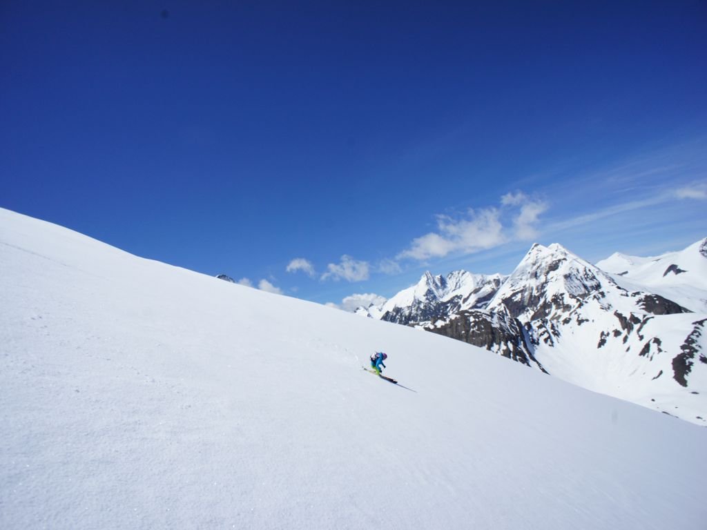 Ein kurzer, sonniger Aufstieg und eine verlängerte Abfahrt über feinstes Skigelände prägen die Tour auf den Kloben. In den letzten Jahren haben sich die Frühjahrstouren in der Glockner Gruppe zu einem fixen Bestandteil meiner Jahresplanung entwickelt. Im Gegensatz zu den Hochwintertouren weiß man, dass der Schnee passt, wenn die Sonne scheint. Mit nur 500 Höhenmetern im Aufstieg und dem relativ leichten Skigelände eignet sich die Tour auch für schwächere Tourengeher oder als kurzer Abschluss für den Abreisetag. Wer die Abfahrt verlängern will, fährt entweder über das Futtererkar zur Glocknerstraße ab (1200 Hm Abfahrt) oder wählt die noch längeren Abfahrten ins Käfertal (1600 Hm, siehe Touren „Kloben via Spielmannkees“).
