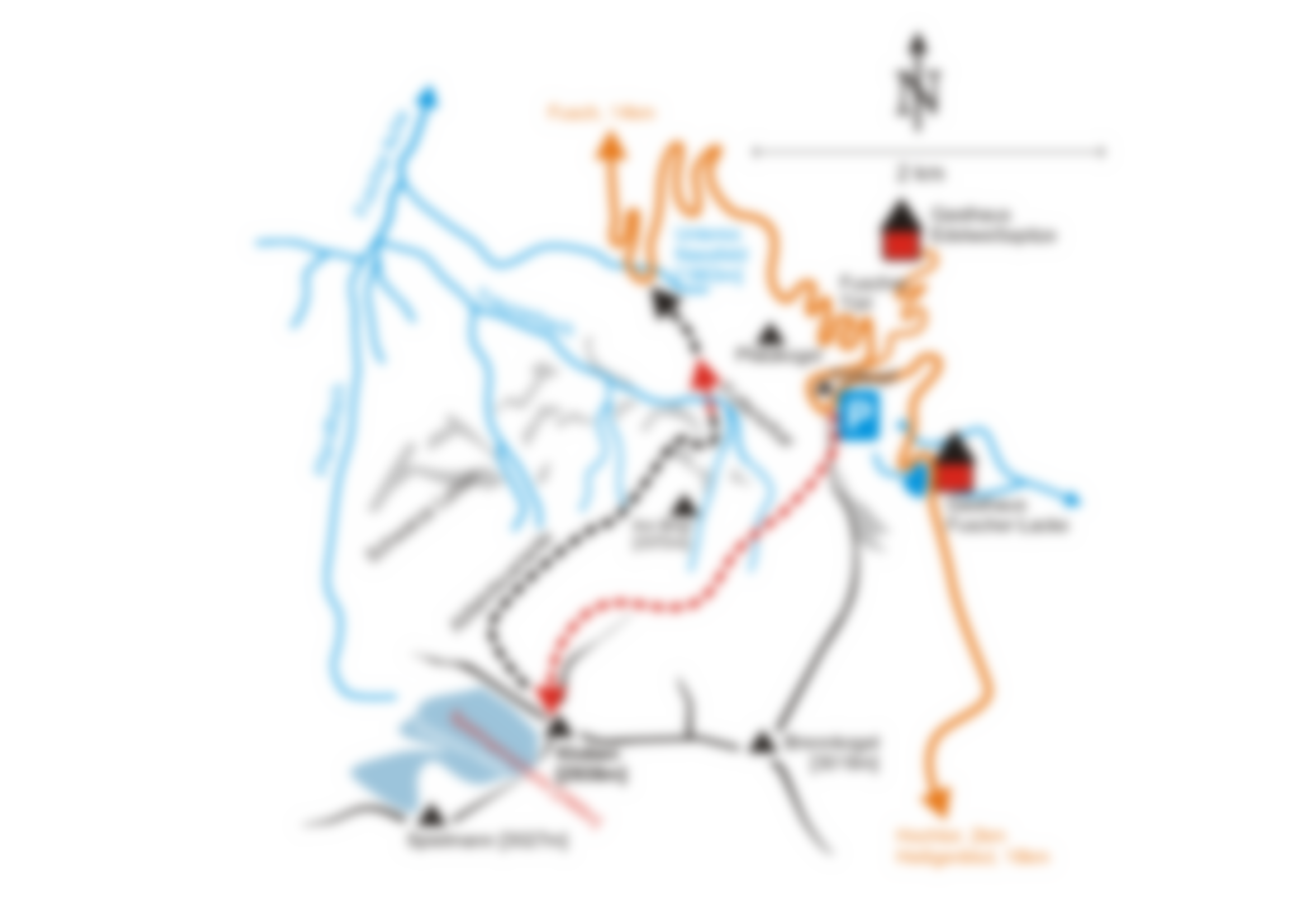 ABFAHRT: Wie Aufstieg. Abfahrtsvariante: Vom Gipfel über die freien Hänge in NNO Richtung abfahren. Wichtig ist, die letzten Meter nahe des Kamms, der vom Gipfel herabzieht, ins Futtererkar einzufahren (siehe Übersichtsfotos!). Vom Futtererkar aus steigt man kurz mit Treppenschritten über den Wiesenhügel und fährt dann in nördliche Richtung zur Kehre bei der Nassfeldbrücke (1963m). Via Autostopp oder 2. Auto zurück zum Ausgangspunkt