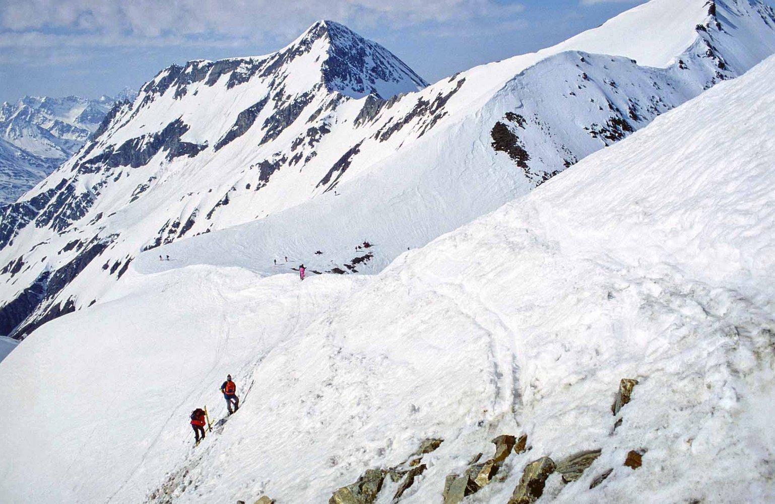 Wunderschöne, an Frühlingswochenenden nach Öffnung der Glocknerstraße überaus gut besuchte Skitour in grandioser Umgebung. Dem relativ kurzen und einfachen Aufstieg vom Fuschertörl folgt eine lange und nicht ganz einfache und knapp 1600 Hm lange Abfahrt ins Käfertal. Etwas Vorsicht ist auf den Altschneedecken über dem Pfandlbach im untersten Teil der Abfahrt geboten (Einbruchgefahr).