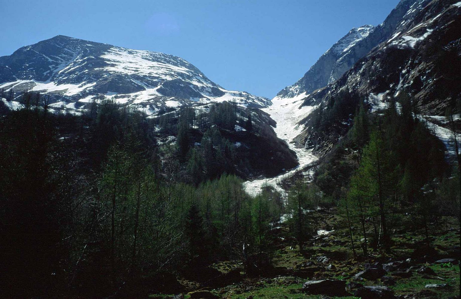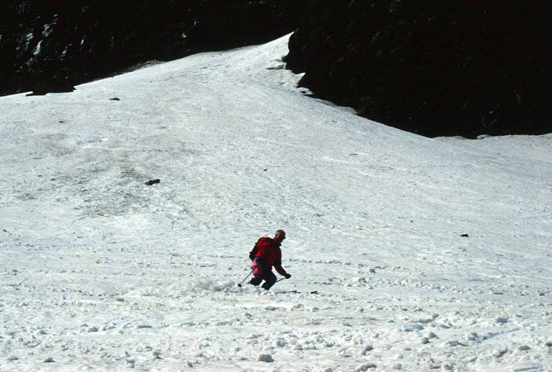 Vom Gipfel nach S (meist ein kurzes Stück zu Fuß) in die Spielmannscharte (2866 m). Weiter über das Spielmannkees in das Tal des Pfandlbaches und ohne Orientierungsprobleme hinunter ins Käfertal.