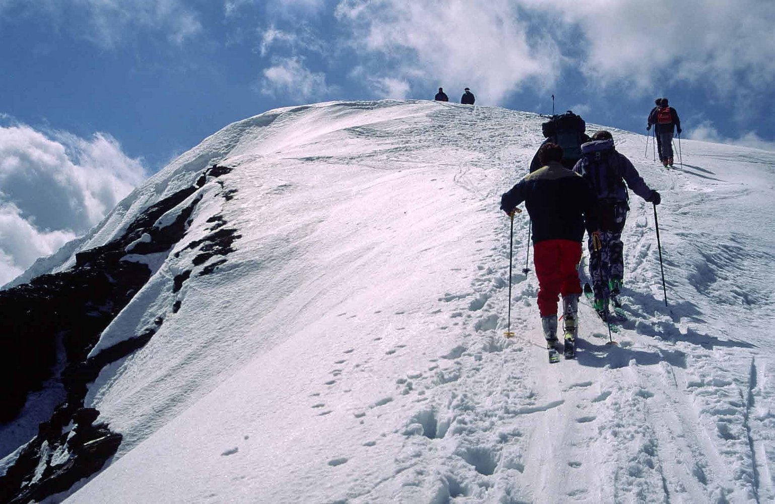Vom Fuschertörl quert man ziemlich eben hinüber zum Brennkogelkees (am Morgen infolge Vereisung oft etwas heikel). Weiter ohne Probleme in einem Rechtsbogen auf den Grat und in Kürze zum Gipfel des Kloben.