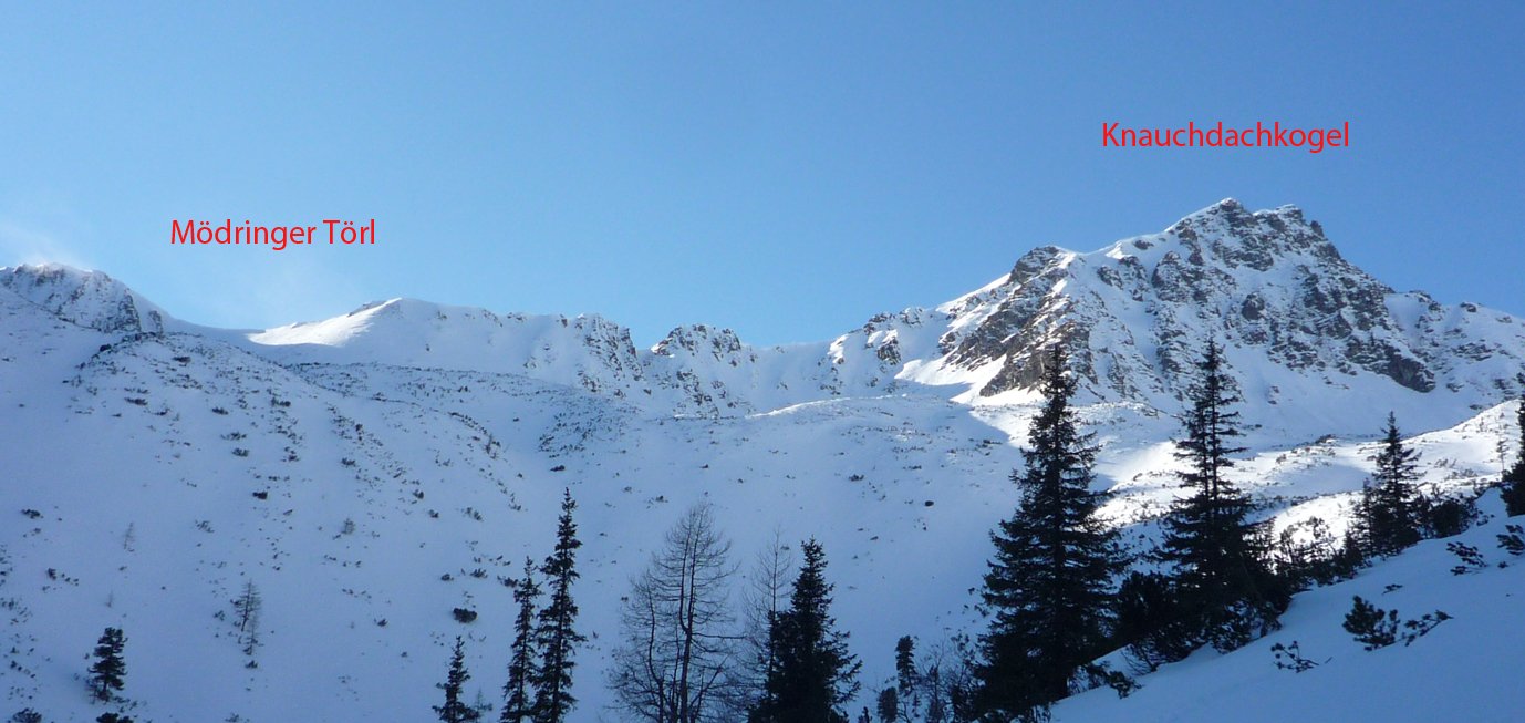 Vorsicht auf Lawinen aus der Nordwand des Gamskogels und insbesonders im Steilhang zum Mödringer Törl hinauf.