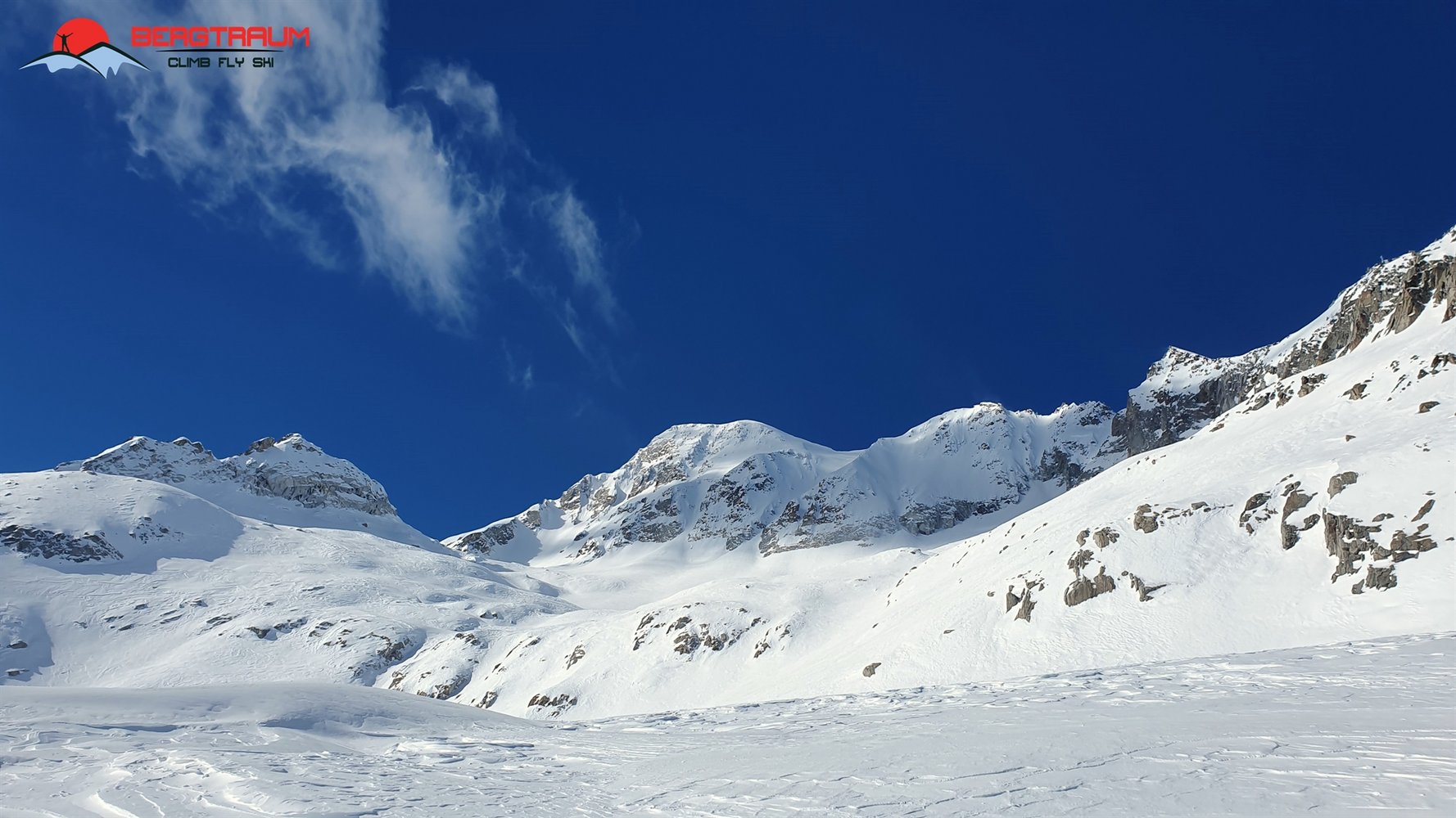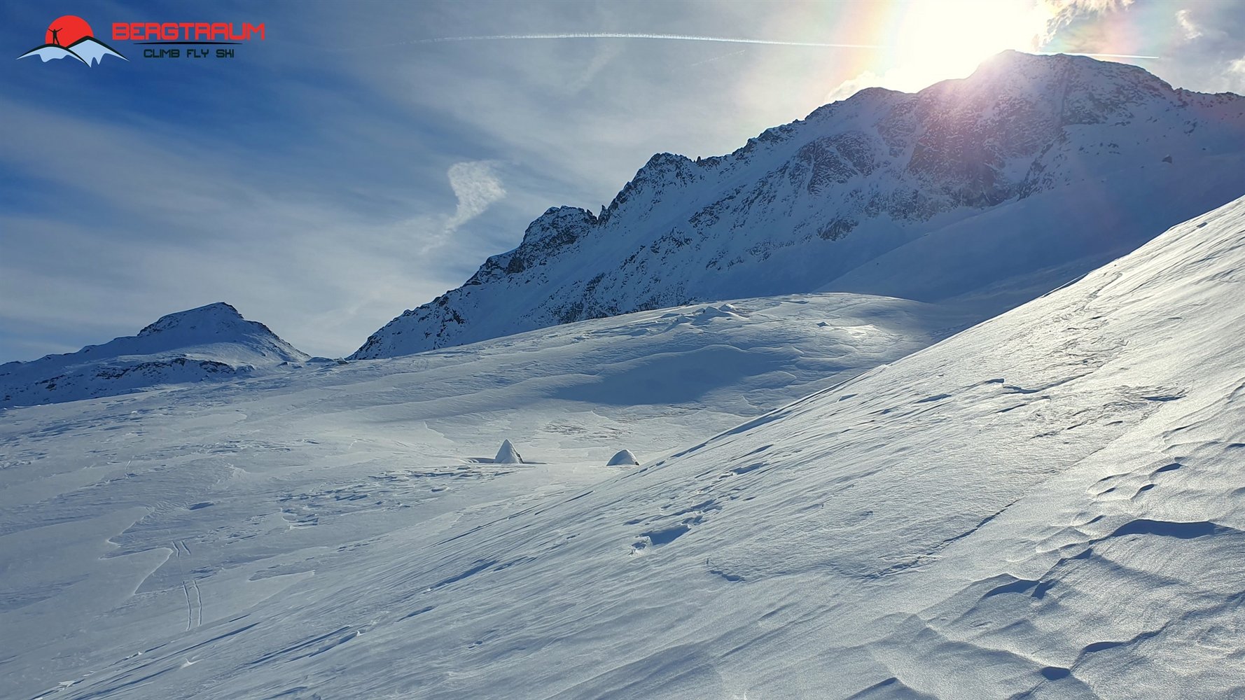 Abfahrt: Entlang der Aufstiegspur durch die Rinne runter bis zur Barmerhütte, dort Auffellen und zur Jägerscharte rauf. Wer noch möchte, kann das Almerhorn noch mitnehmen. Von der Scharte runter über herrliches Schigelände zum Ausgangspunkt retour.