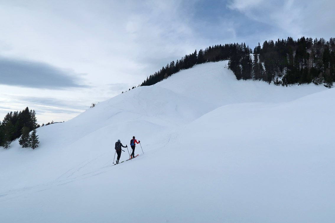 Der Hang vor der Kranzhornalm ist etwas steiler, sonst kaum lawinengefährdet.