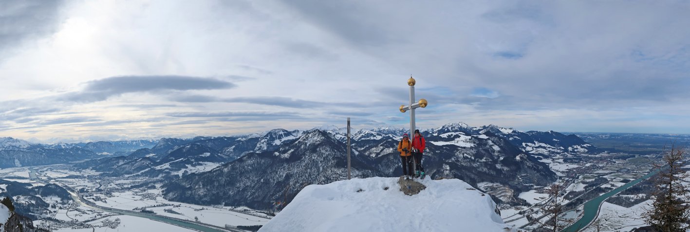 Schöne Skitour auf ein markantes Felshorn hoch über dem Inntal. Schöner Blick ins Inntal und ins Kaisergebirge. Das Kranzhorn hat zwei Gipfelkreuze - das schlichte, dem Inntal nähere ist das österreichische Gipfelkreuz, das etwas protzige (goldene) ist das Gipfelkreuz auf deutschem Staatsgebiet. Unterhalb des Gipfels steht eine kleine Kapelle, angeblich sollen die Nazianalsozialisten die Heiligenfigur ins Tal geworfen haben, sie wurde laut Überlieferung später von einer alten Frau unversehrt gefunden und wieder zurück zur Kapelle gebracht.