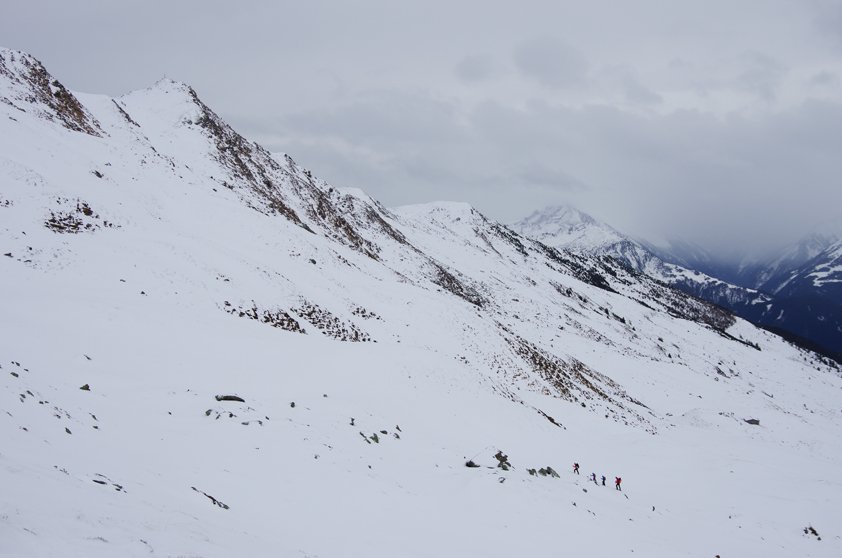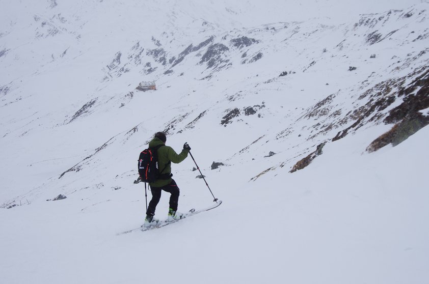Bei unsicheren Schneeverhältnissen wählt man den Kammaufstieg im Bereich des Sidanjochs um in einem großen Bogen auf den Gipfel zu gelangen.