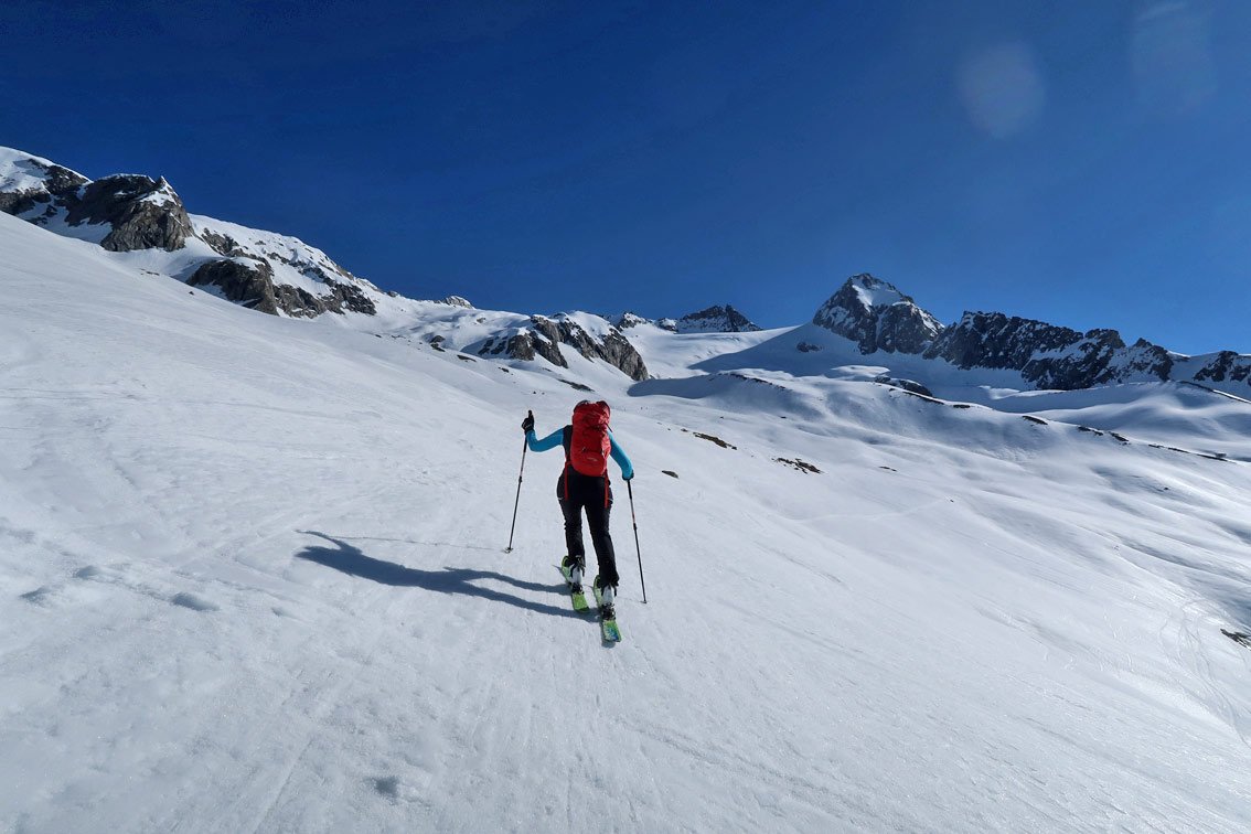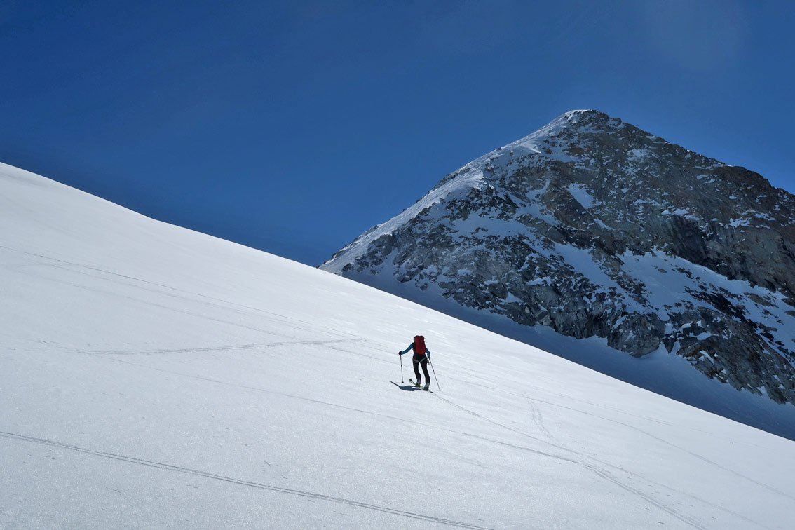 Klassische Frühjahrs-Skihochtour (man geht oben über einen kleinen Gletscher, Gletscherausrüstung nötig) die aber auch im Hochwinter gemacht wird.