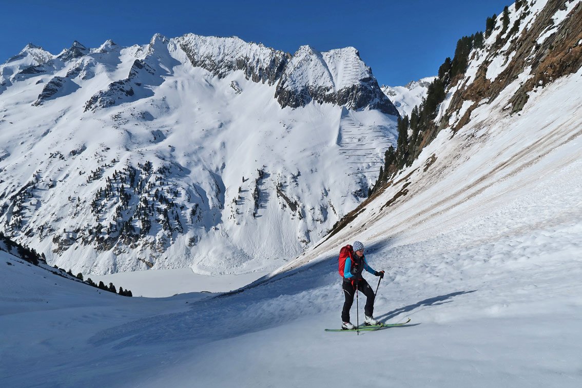 Klassiker im hinteren Zillergrund und eine der leichtesten Touren im Bereich des Speichersees Zillergründl. Die Tour wird in der Regel im Frühjahr gemacht und gerne auch mit der deutlich anspruchsvolleren Reichenspitze kombiniert. Vor allem bei Firn ein perfekter Skigenuss den man sich an schönen Frühsommertagen nicht entgehen lassen sollte.