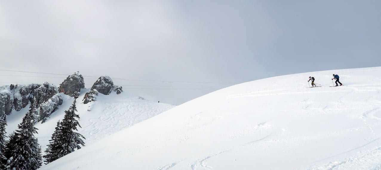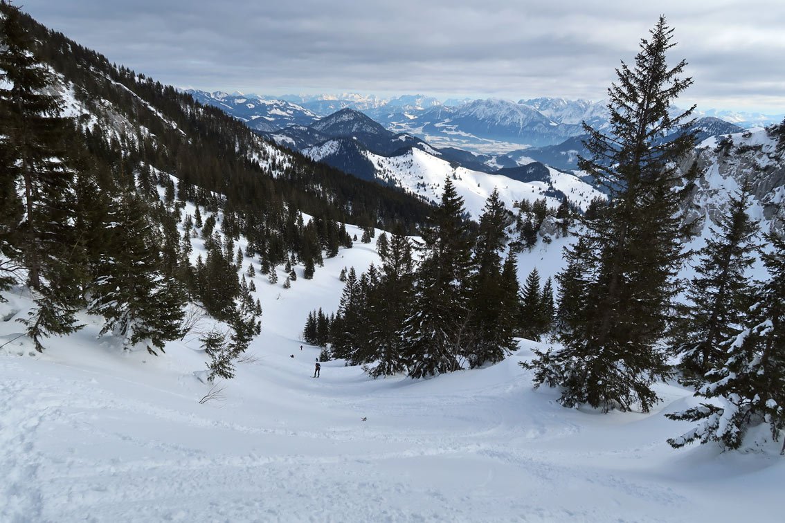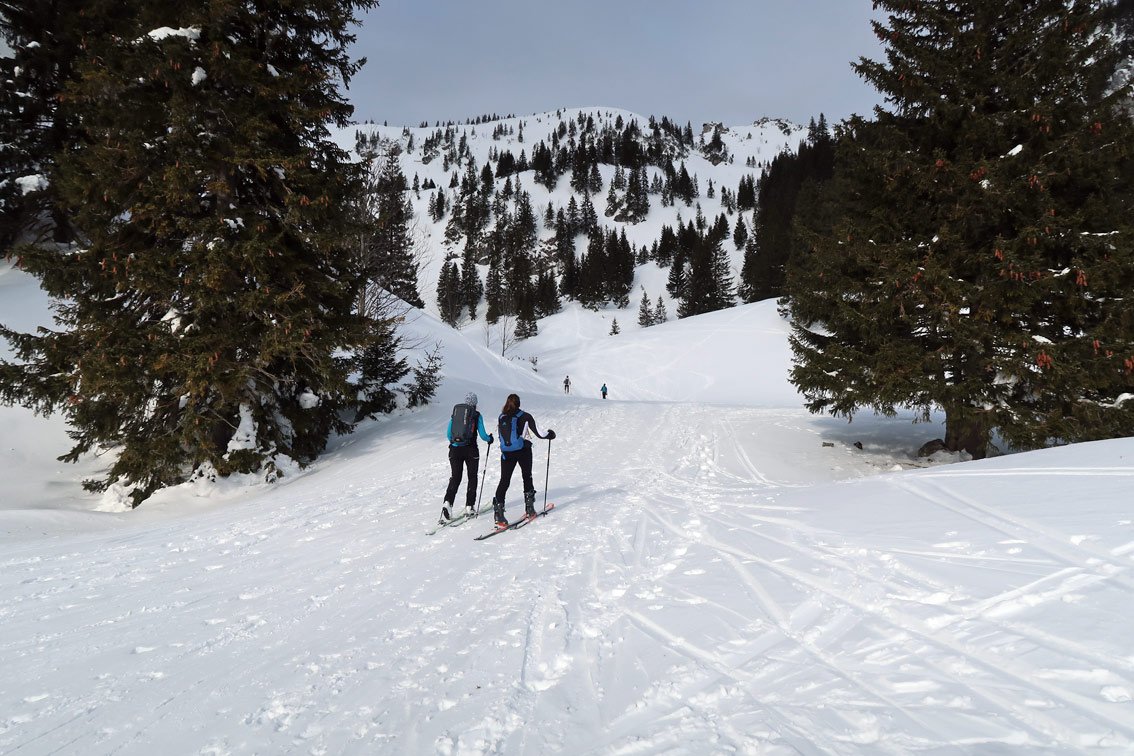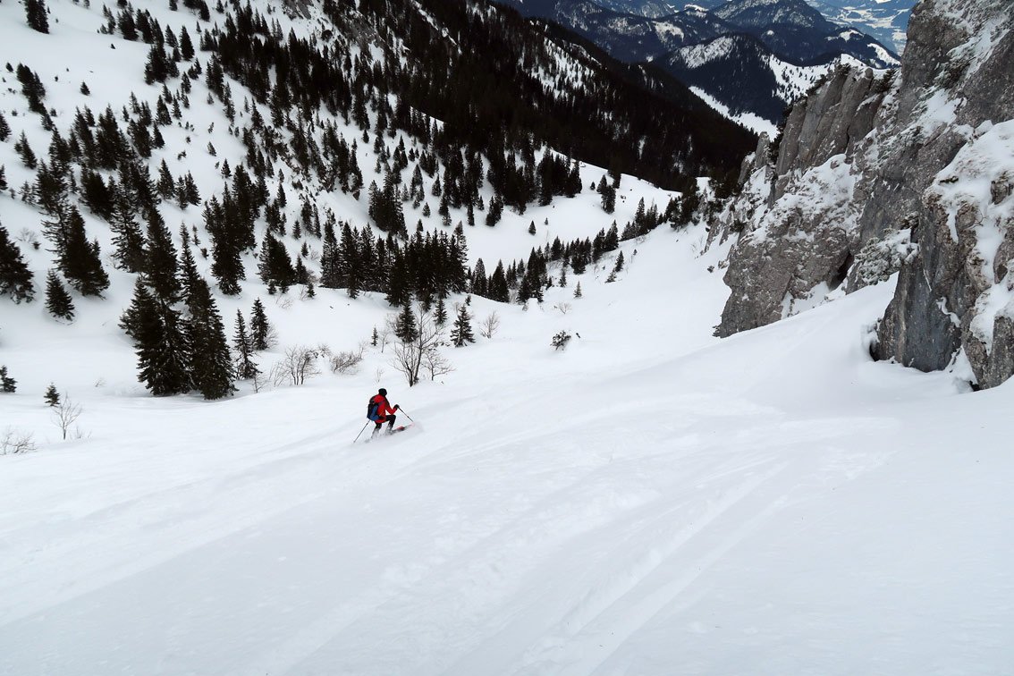 Nur in der Rinne unterhalb des Gipfels sind die Hänge etwas steiler.