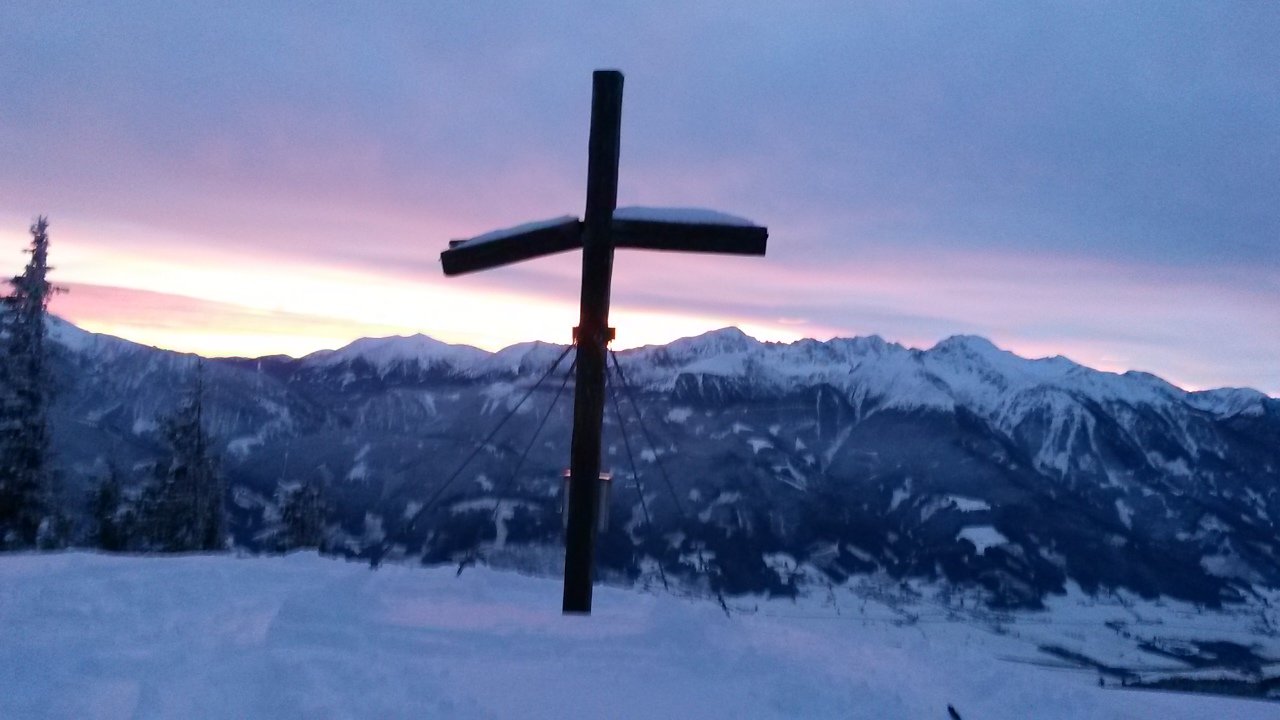 Aufstieg: Auf der rechtesten Skipiste links vom Lift starten und nach wenigen Minuten den Lift nach rechts überqueren und am Rand der Waldpiste hinauf bis man wieder auf die große Piste trifft. An ihrem Rand bis bis zur Bergstation des rechten Schleppliftes aufsteigen und auf einer Forststraße waagrecht nach links queren bis man erstmals die Gipfel des Riffels und des Kalblings durch einen Schlag sieht. Dann vor einer baumlosen Rinne auf dem rechten Rücken durch den Wald hinauf zum Westgrat und auf diesem zum Kreuz. Dem NO-Grat weiter zum höchsten Punkt folgen. Dort kann man bei guten Verhältnissen auch den Südosthang abfahren und wieder aufsteigen.