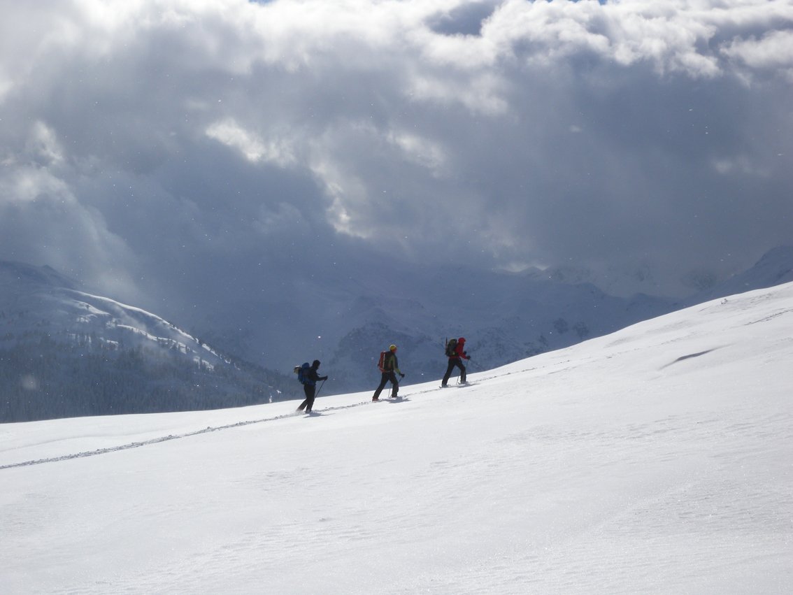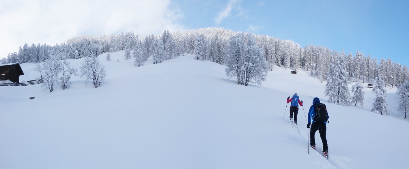Anmerkung: Man kann von Vinaders bis Au (Häusergruppe kurz vor Obernberg) fast überall in Richtung Leitner Berg aufsteigen. Oft sind schon Spuren vorhanden, mit etwas Glück findet man eine Spur und einen ausgeschaufelten Parkplatz.