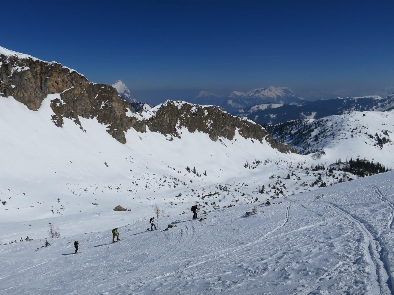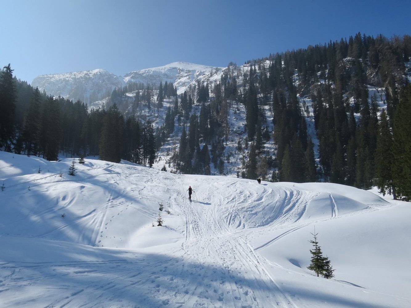 Wohl der beliebteste Skitourenberg im Johnsbachtal, der durch seine nordseitige Ausrichtung auch sehr schneesicher ist. Dementsprechend ist diese Skitour immer sehr geht besucht, dennoch sollte man am Gipfelhang auf Lawinen achten. Wer bei der Abfahrt dem Trubel etwas entgehen will, wählt die nordseitige Rinne in die Ploden