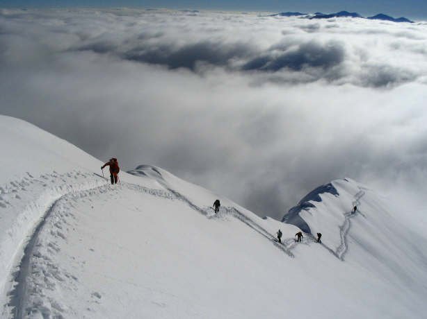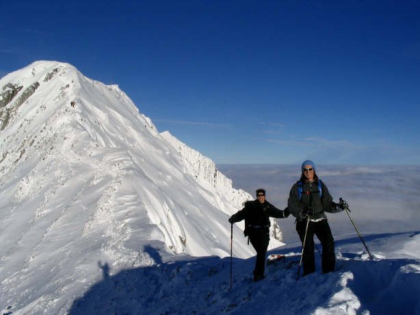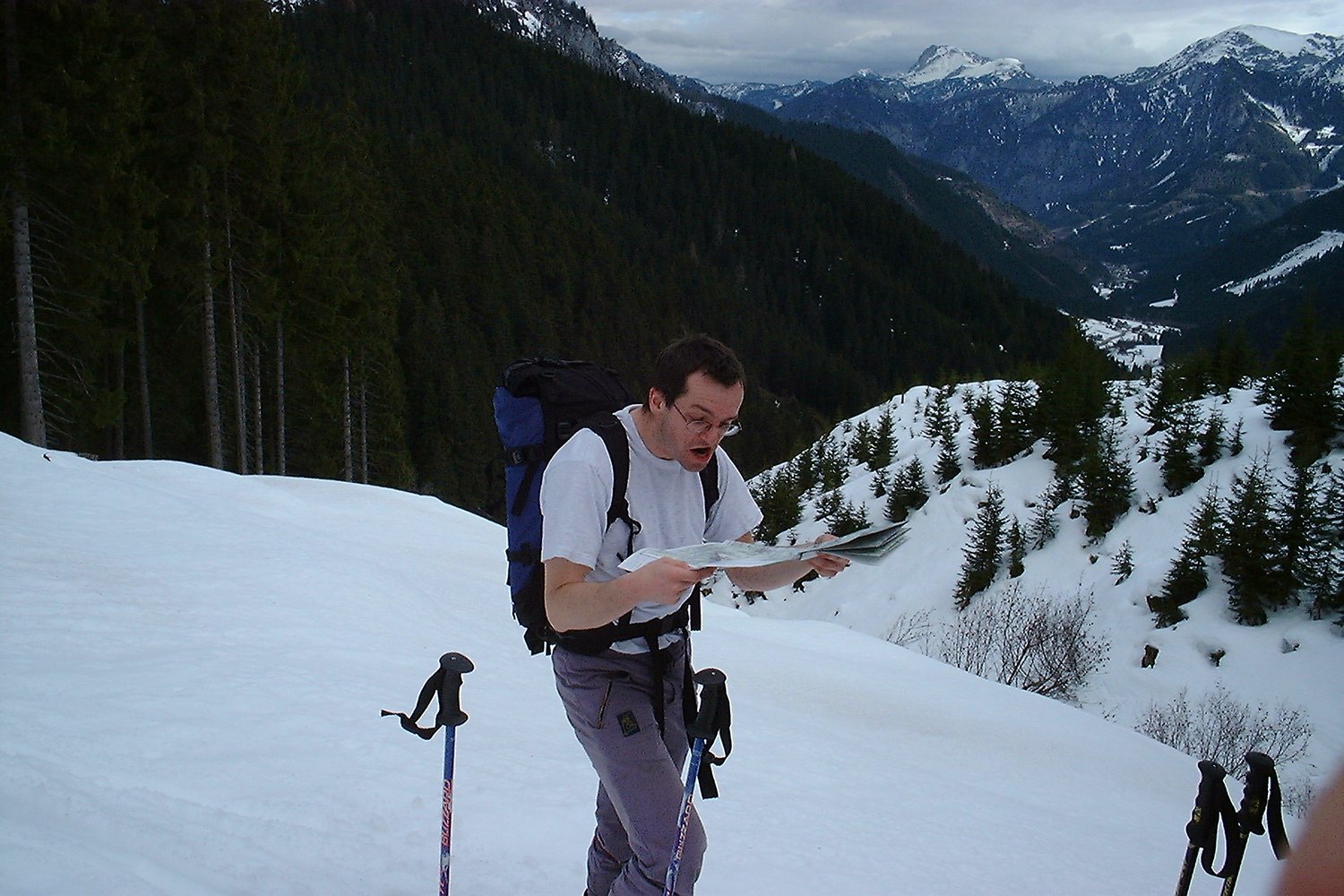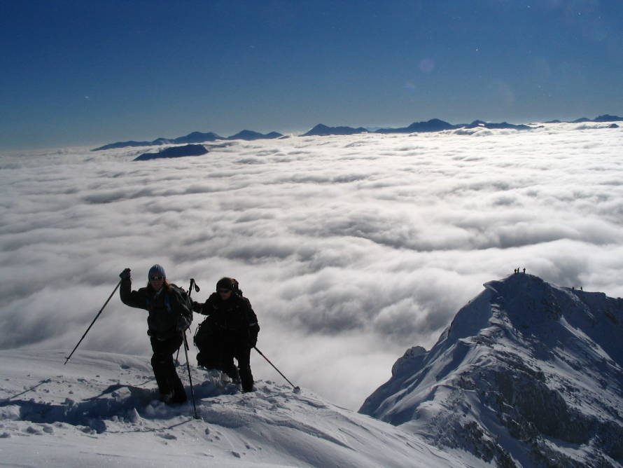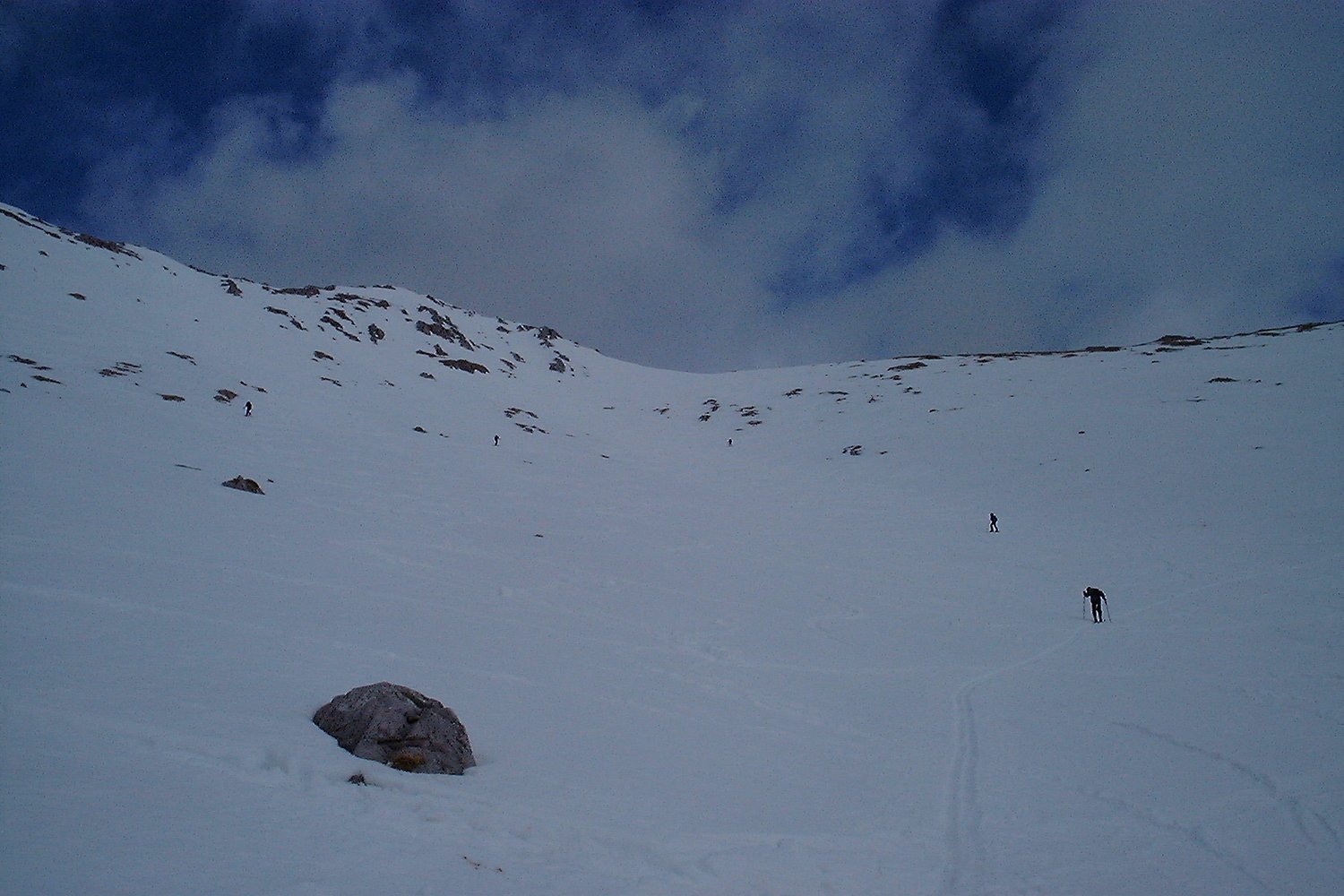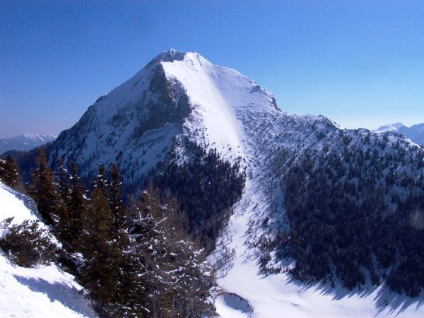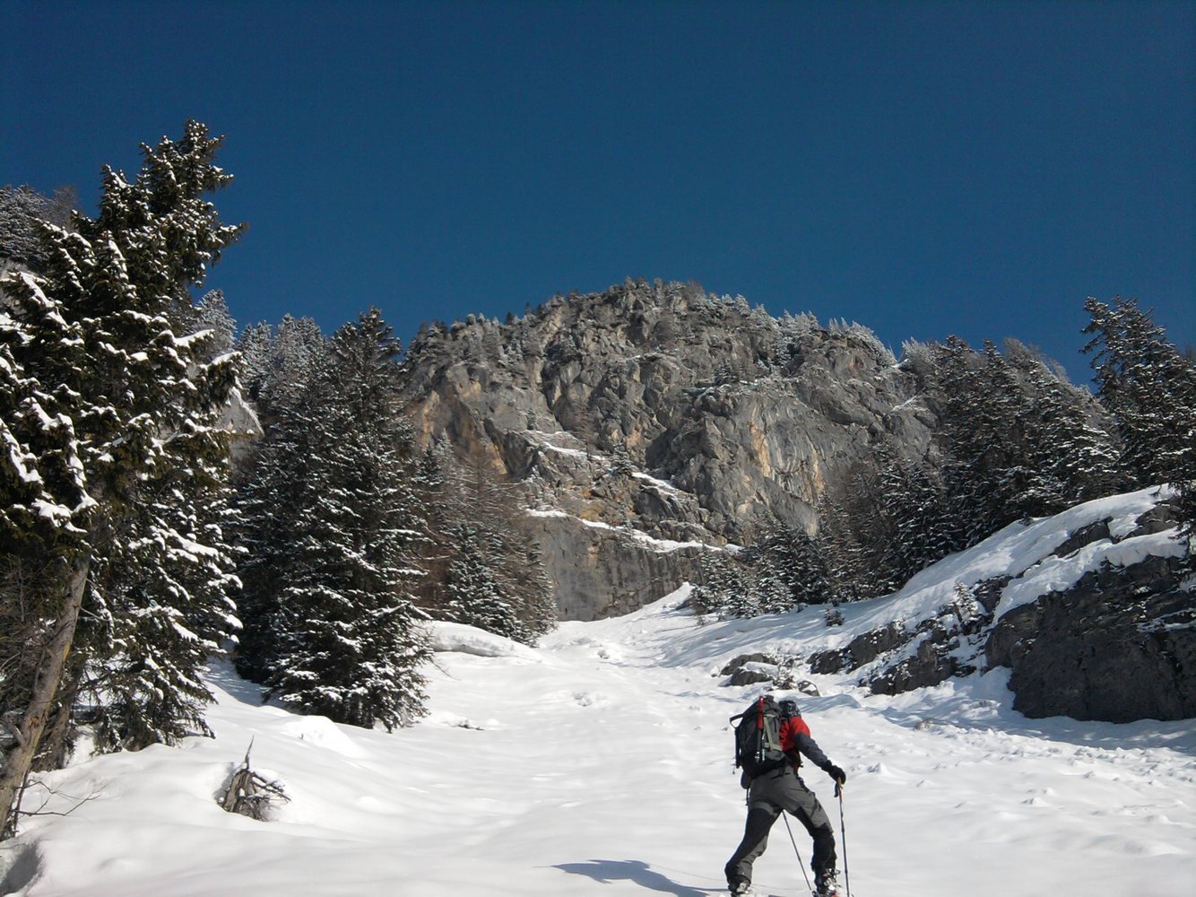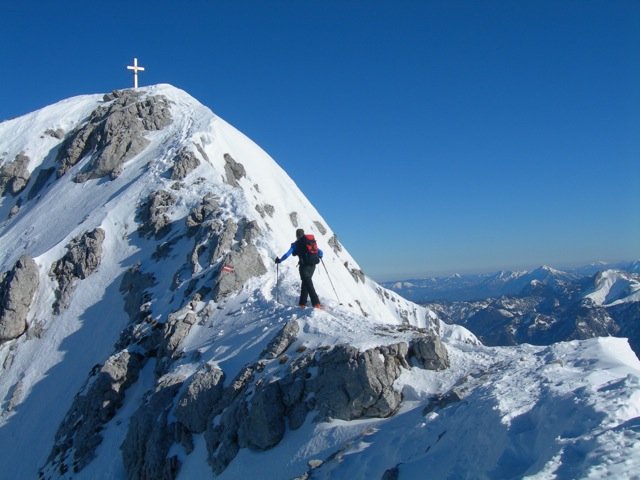 Die Abfahrt erfolgt über die Aufstiegsspur. Wenn man dann doch vor der Lugauer Plan steht, ist man in ca. einer guten Stunde auf dem Gipfel. Am Ende stellt sich die Lugauer Plan etwas steiler auf. Hier ist auch auf Lawinengefahr zu achten.