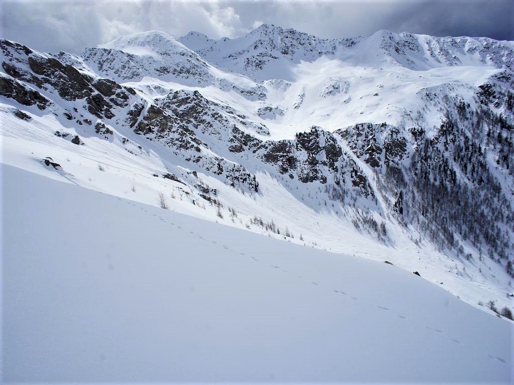 In der Kurve vor dem Sadnighaus führt ein gespurter Weg entlang des Bachs ins Astner Moos. Vorbei an den Almhütten der Auernig Alm (1857m) führt der Weiterweg in Richtung Lindler Alm (1962m). Ab hier steil über den westseitig ausgerichteten Hang hinauf, kurz vor dem Kamm befindet sich eine Mulde. Nun nochmals steil über den Südkamm zum Gipfel.