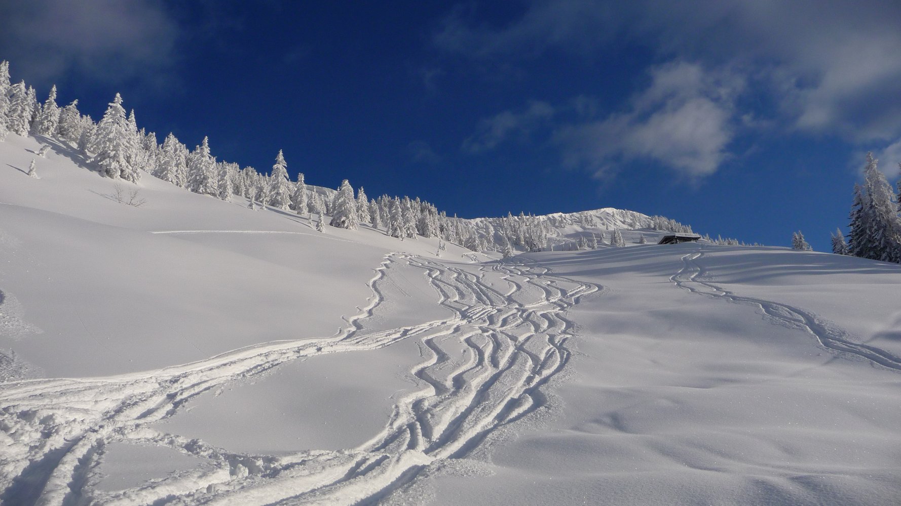 Einfache, sehr beliebte und häufig gespurte Tour über Almwiesen und Waldgelände. Anfängertauglich.